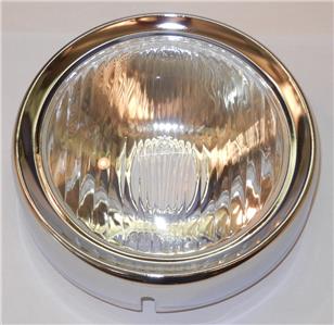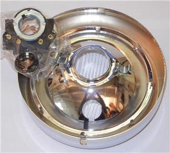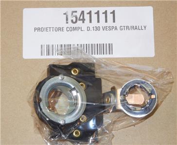 1964-1978 Vespa GTR Rally Sprint 125 150 180 200 Headlight unit, bulb holder, and rim. 130mm diameter light unit is all metal, with no plastic. Outside of rim measures 160mm, so be careful what you measure.