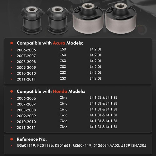4x Control Arm Bushing for Honda Civic Acura CSX Front Lower Forward & Rearward