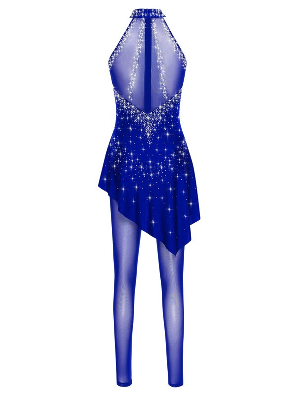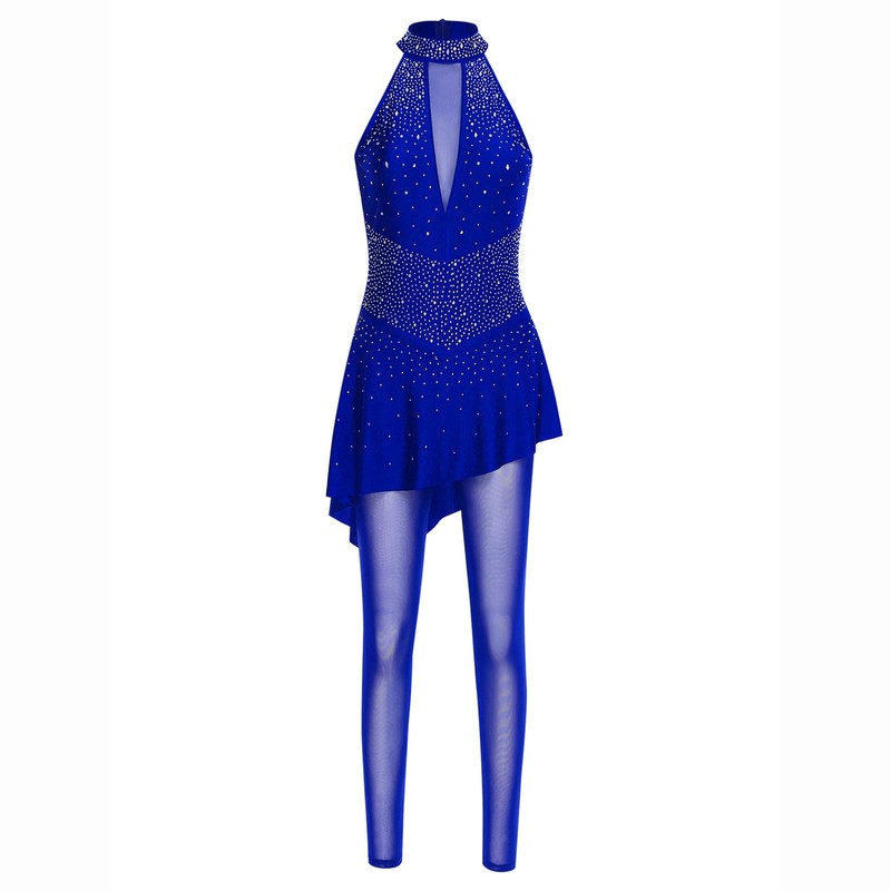 The irregular skirted design is a popular element, adding a dynamic and fluid feel to the outfit, suitable for figure skating competitions and performances.