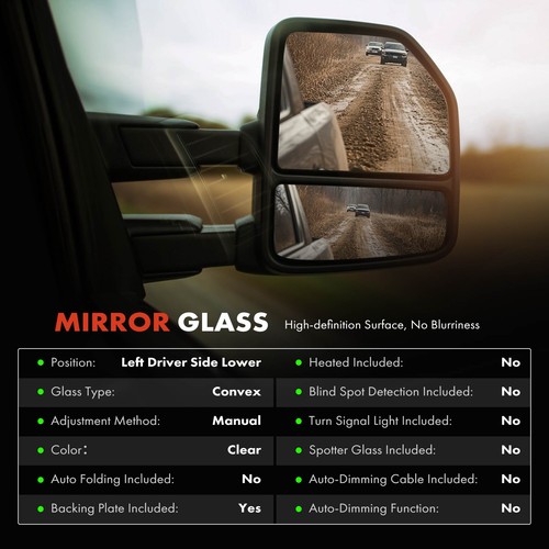 Note-2:  It fits the model on Driver Lower Side, Color: Clear, with Backing Plate, with Manual Glass Adjust, without Heated