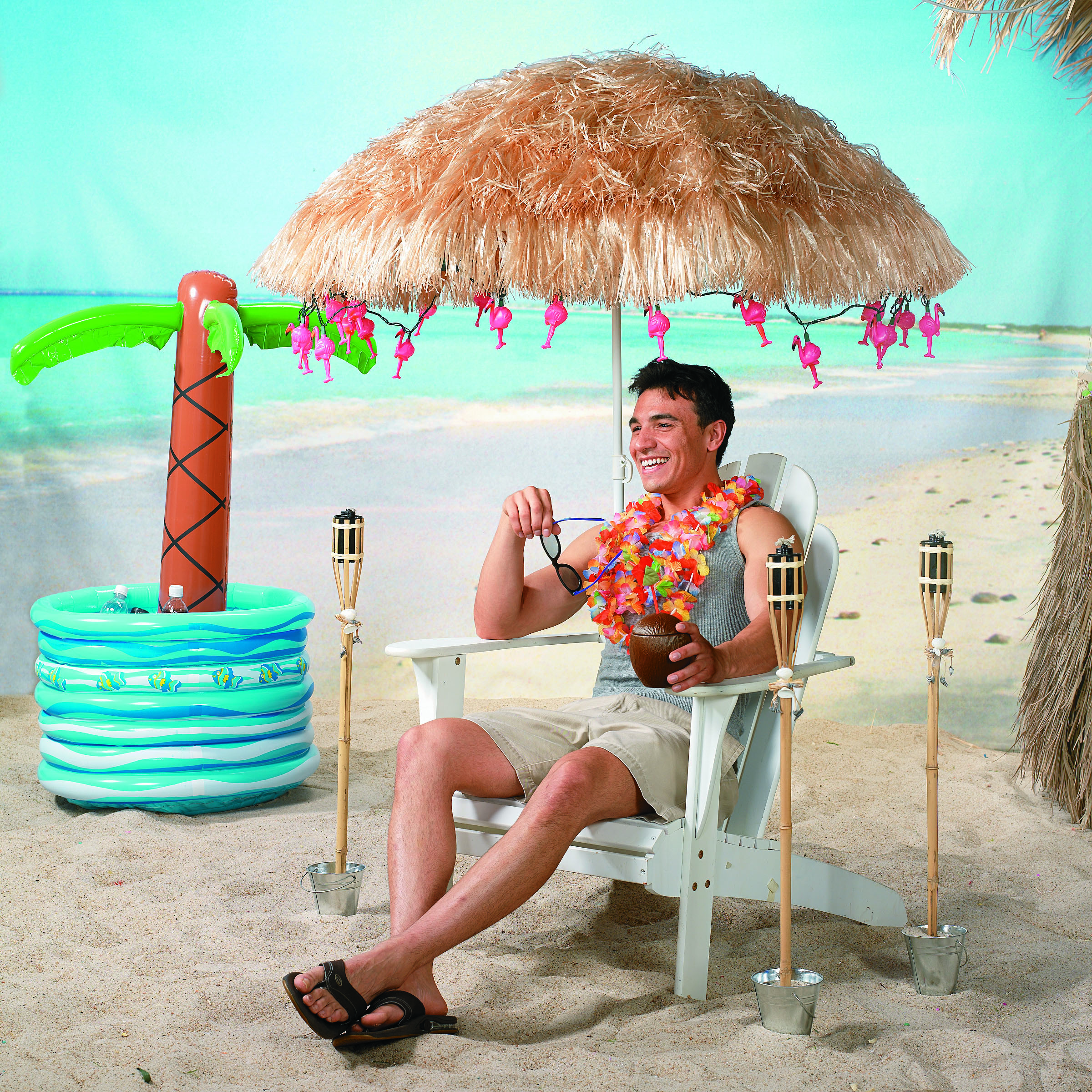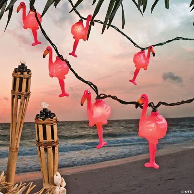 Light up your luau with these truly tropical lights! Featuring the classic pink bird, this glowing string of lights will add an illuminating touch to your indoor beach party decorations. Also fun for adding a splash of color to a bedroom! Includes ten 4 1/2" plastic flamingo lights. 8 ft. Light sets interconnect. UL listed. For indoor use only. © OTC