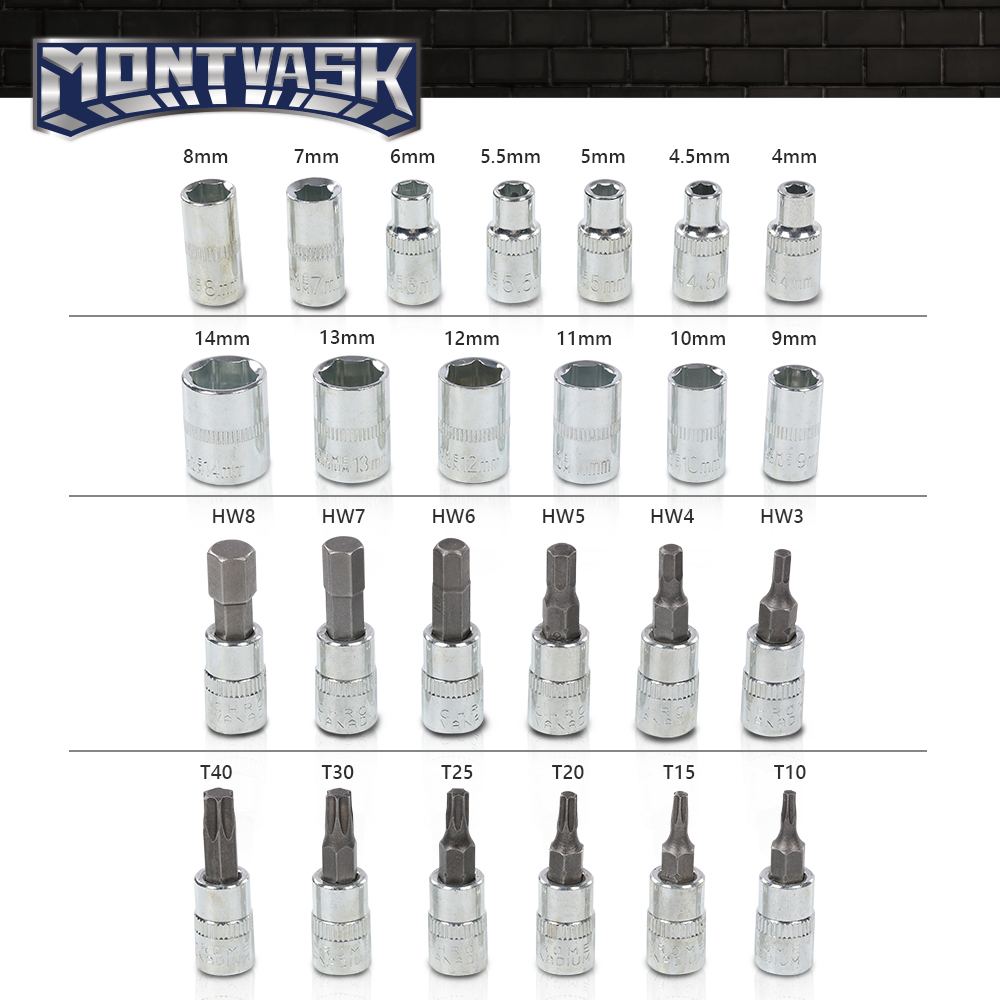 13 x 1/4"" DR SOCKETS: 4, 4.5, 5, 5.5, 6, 7, 8, 9, 10, 11, 12, 13, 14MM