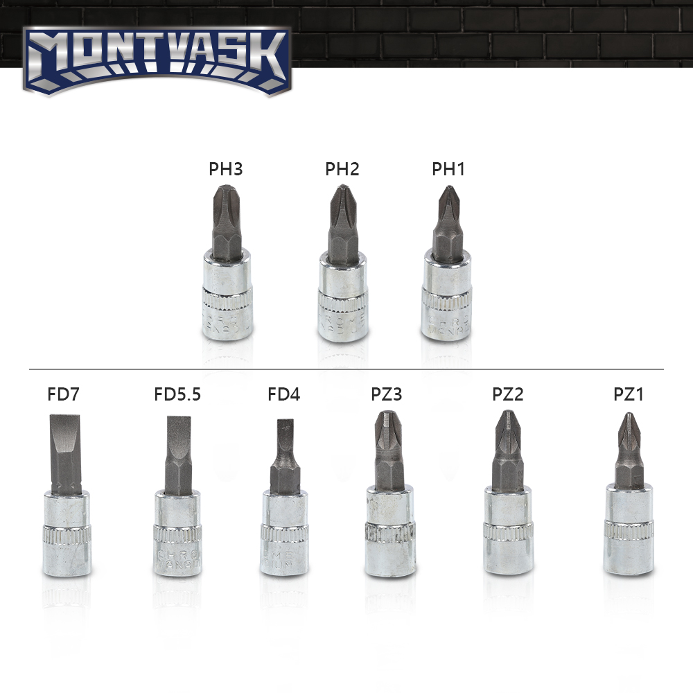 21 x BIT SOCKETS: SL4, 5.5, 7 PH1, 2, 3 PZ1, 2, 3, HEX3, 4, 5, 6, 7, 8 T10, 15, 20, 25, 30, 40