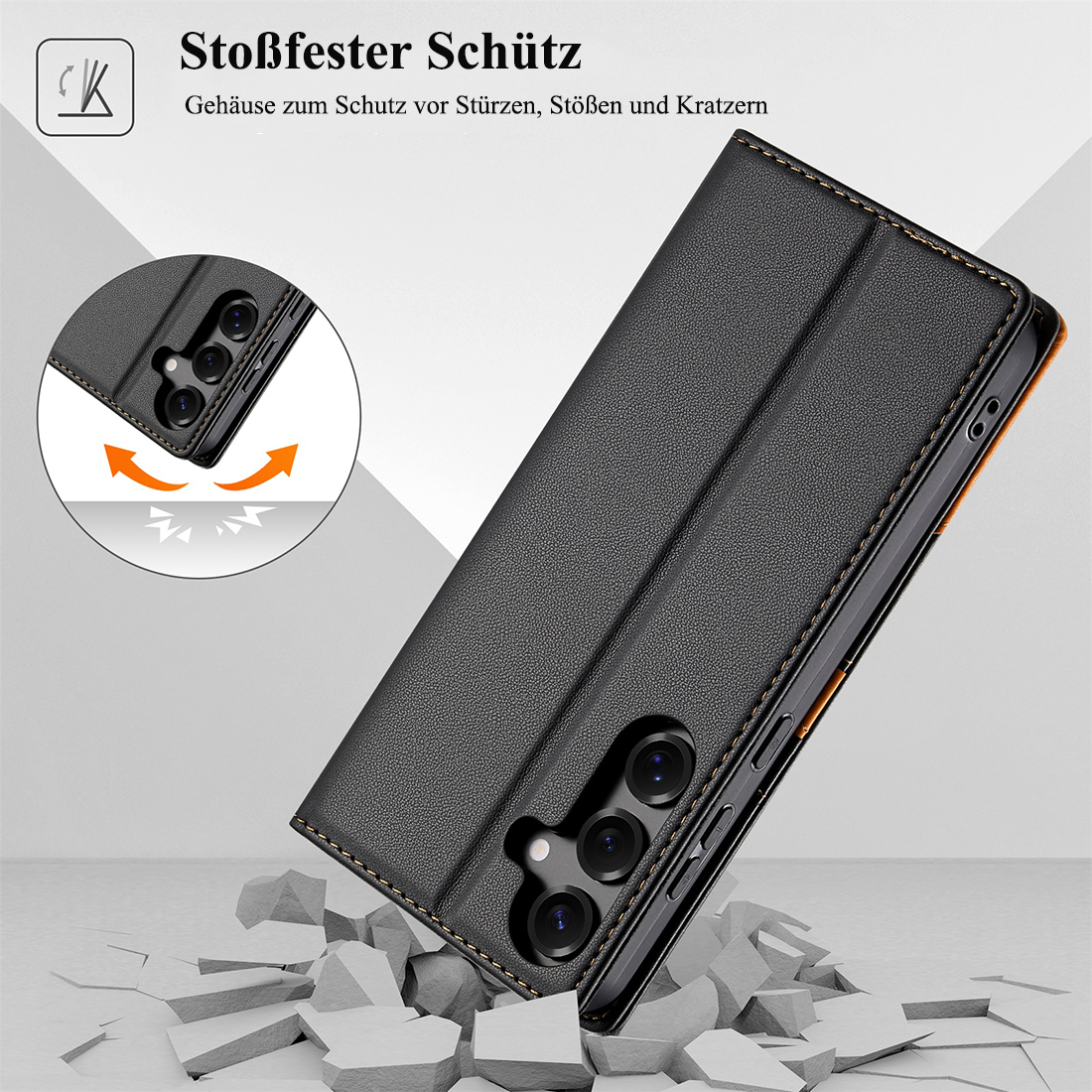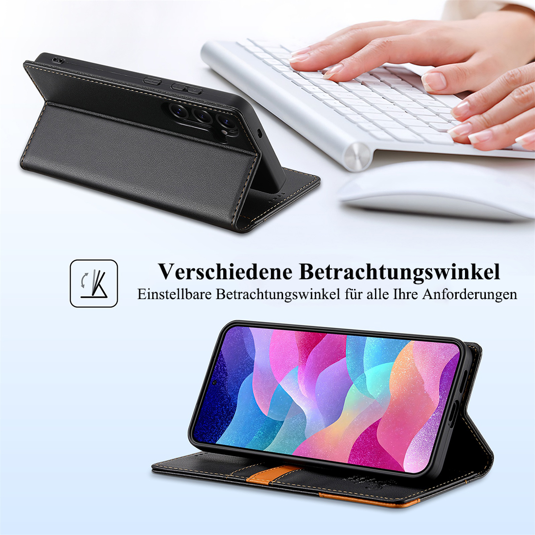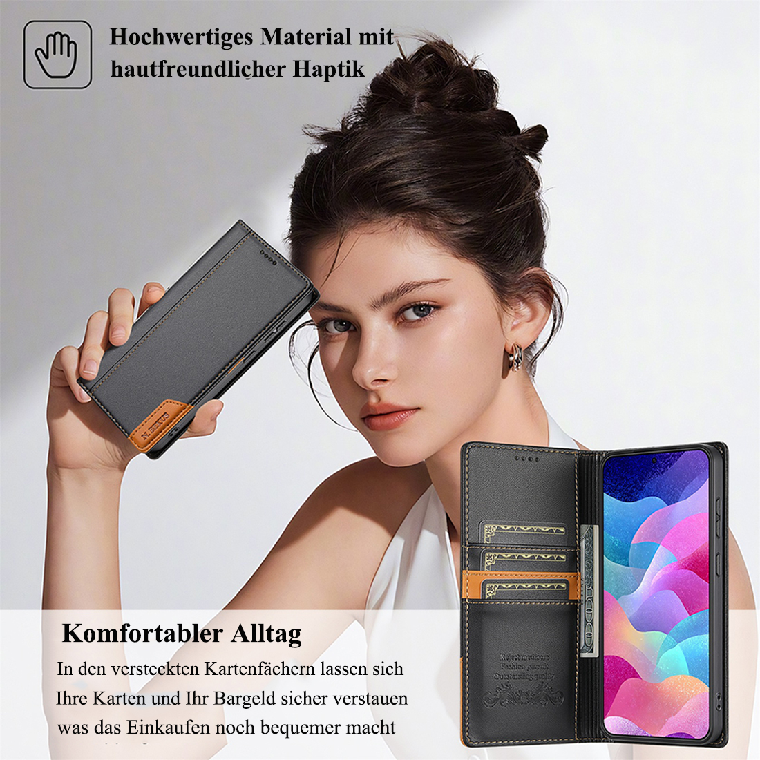 Selektion B: 1 Stück Handyhülle Schutzhülle lederhülle mit 2X Displayschutzglas