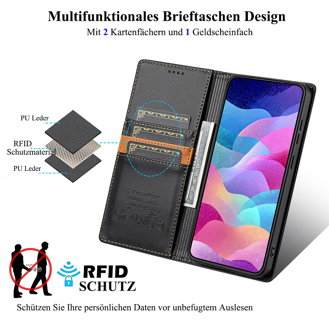 • Premium-PU-Leder-Etui ist speziell für Ihr Smartphone entwickelt, perfekt schützen Sie Ihr Telefon gut.