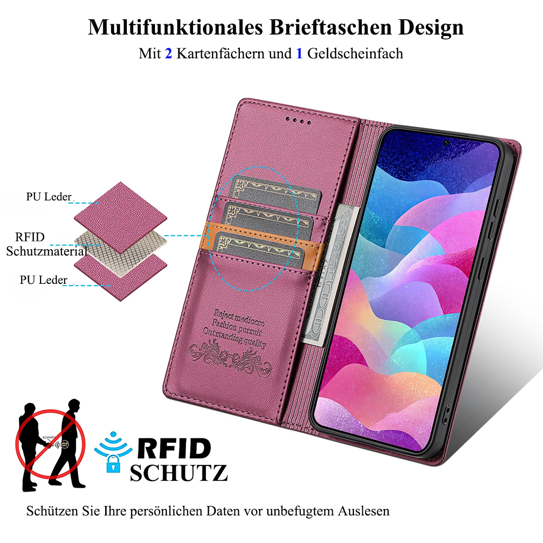 • Starke magnetishe Funktion und Unterstützung der RFID-Funktion;