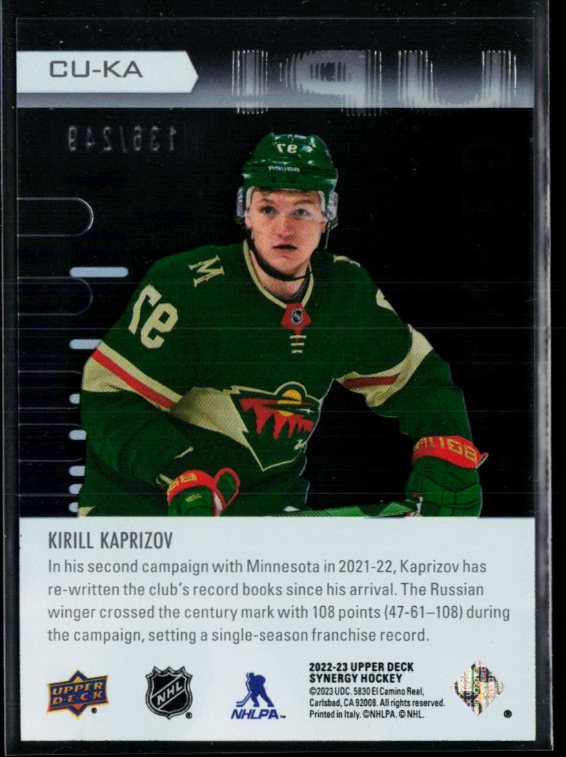 | 2022-23 Upper Deck Synergy Cranked Up! Blue #CU-KA Kirill Kaprizov 136/249 |