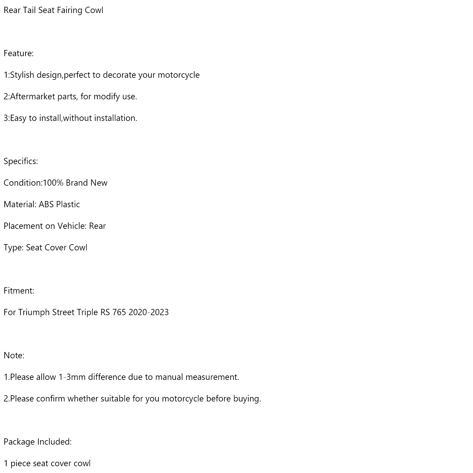 Couverture de capot de carénage de siège arrière pour 20-24 Street Triple RS765