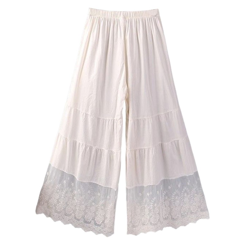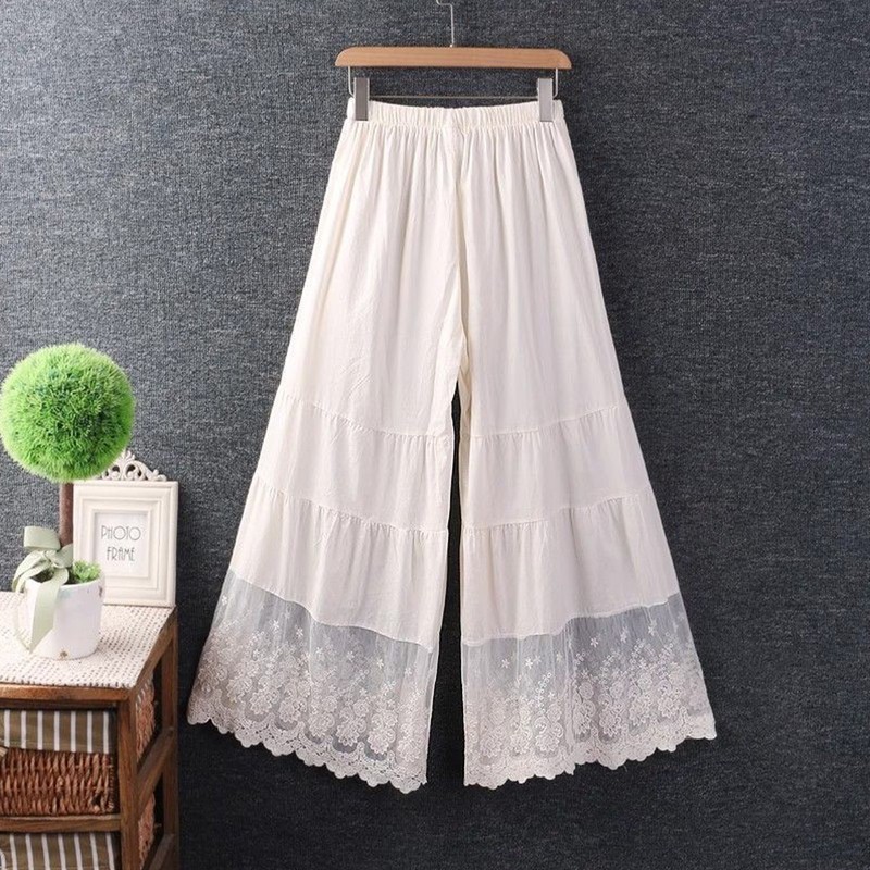 The solid-color design with floral lace trim adds a touch of elegance and femininity, making the pants a trendy and fashionable choice that stands out.