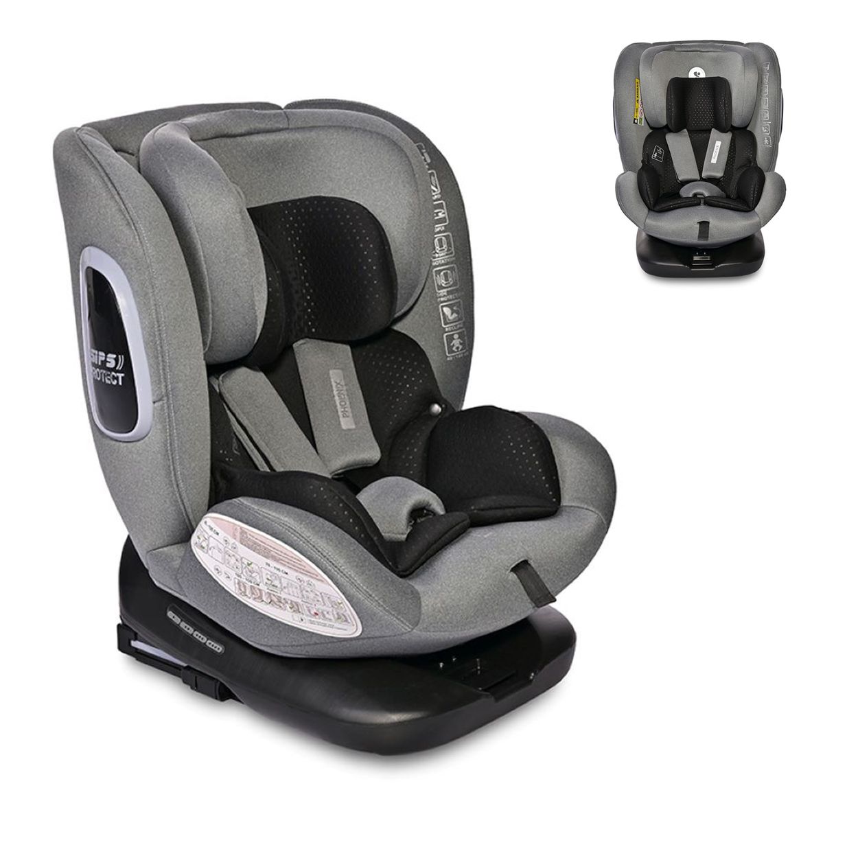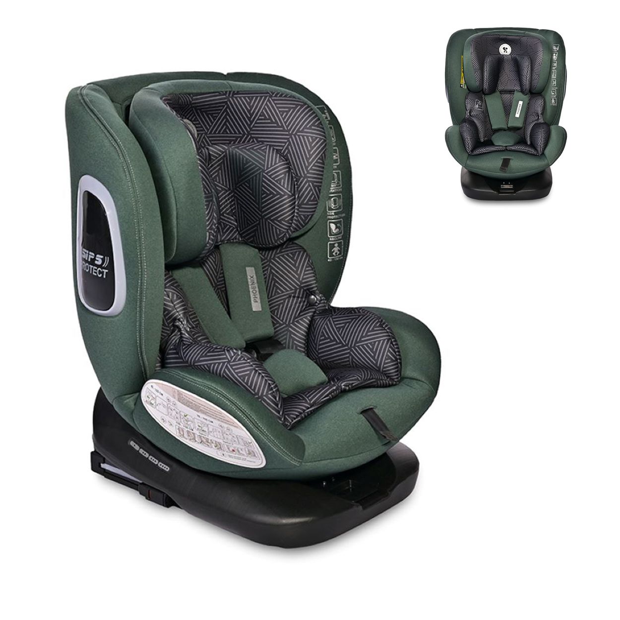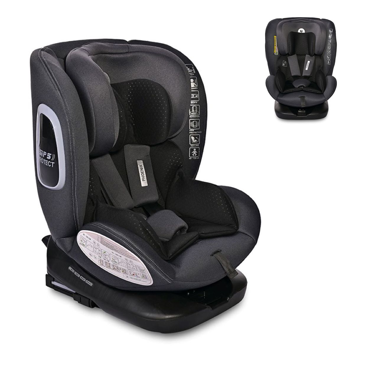 Der Kindersitz Phoenix i-Size von Lorelli mit Seitenschutzsystem und Isofix ist aus der Gruppe 0+/1/2/3 (0-36 kg) und ab Geburt bis ca. 12 Jahre geeignet. Er ist um 360 Grad drehbar und somit in Fahrtrichtung und als Reboarder anwendbar.
