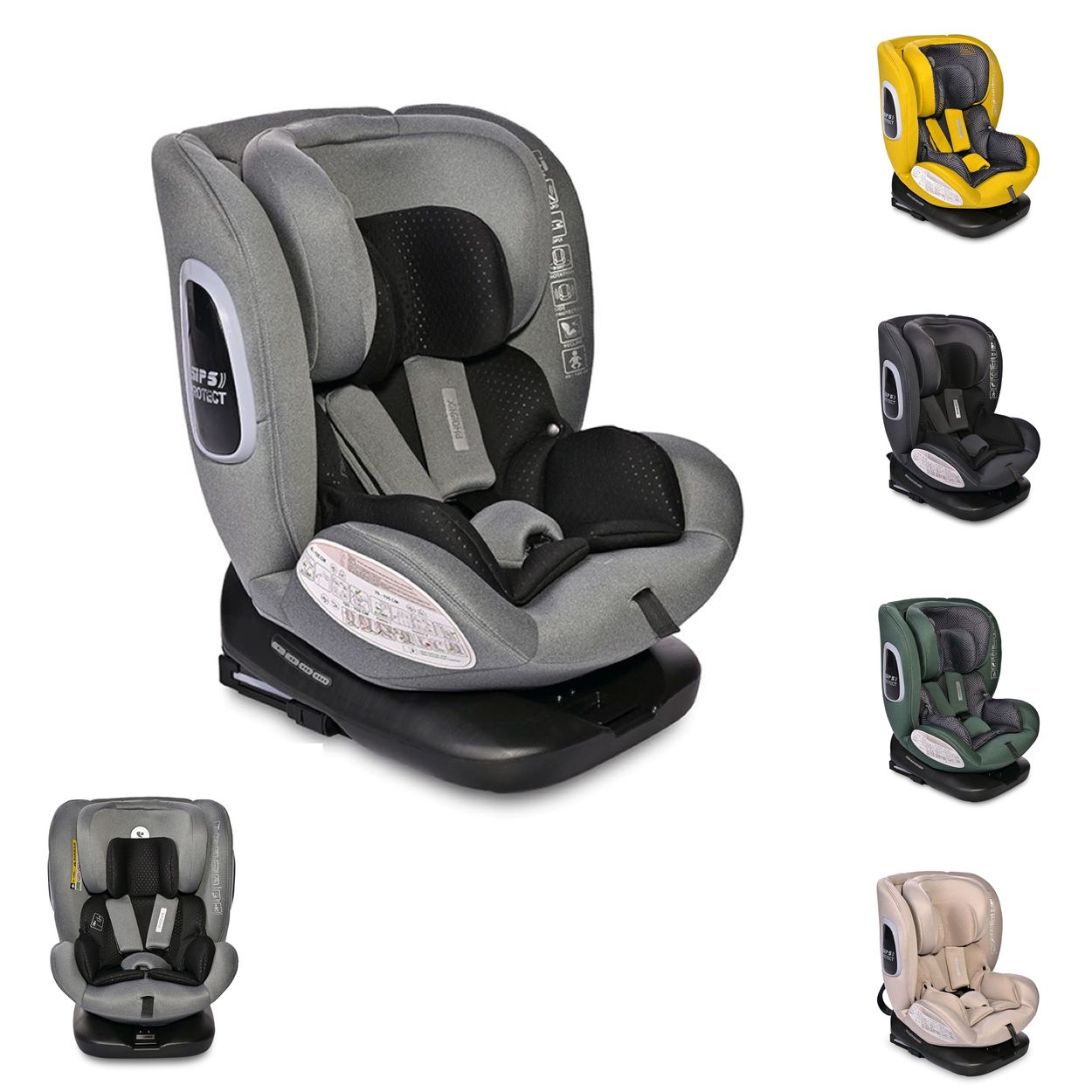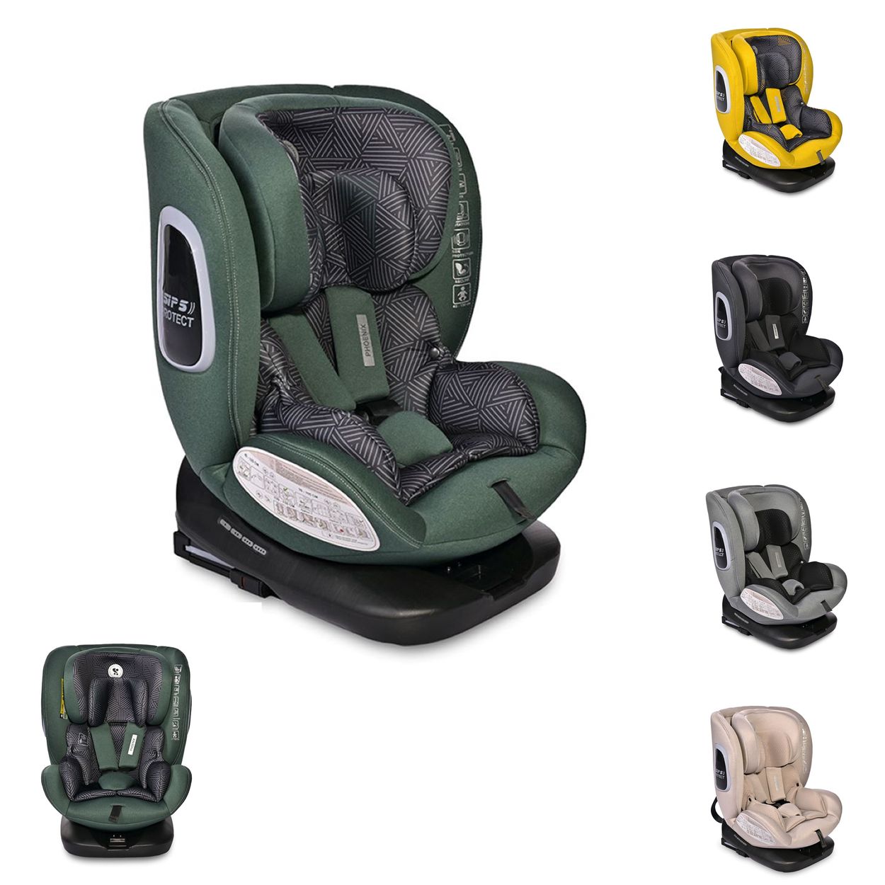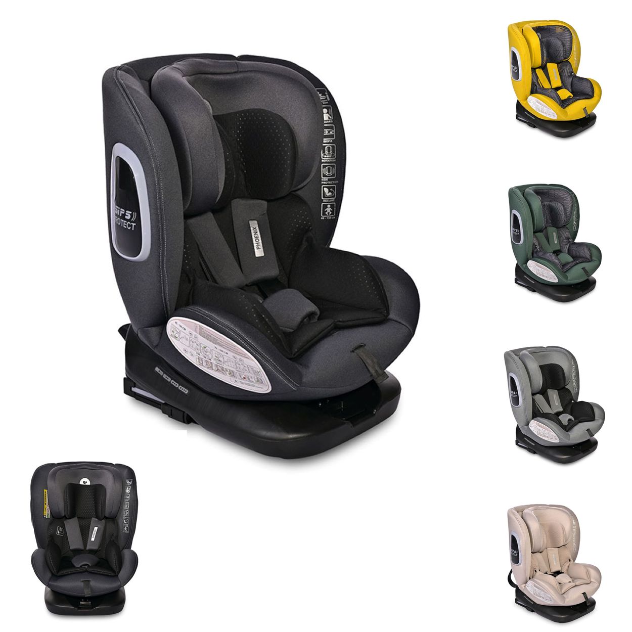 Der Kindersitz Phoenix i-Size von Lorelli mit Seitenschutzsystem und Isofix ist aus der Gruppe 0+/1/2/3 (0-36 kg) und ab Geburt bis ca. 12 Jahre geeignet. Er ist um 360 Grad drehbar und somit in Fahrtrichtung und als Reboarder anwendbar.