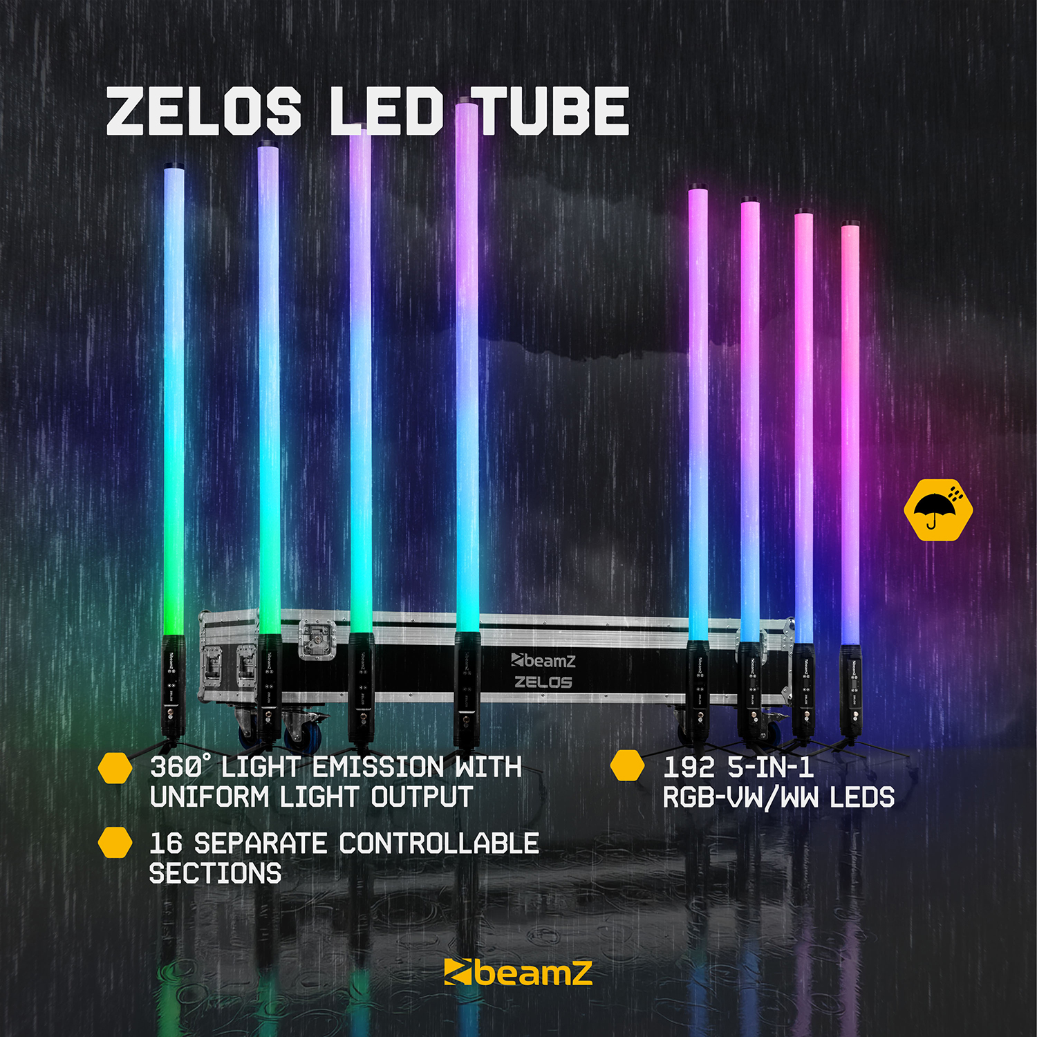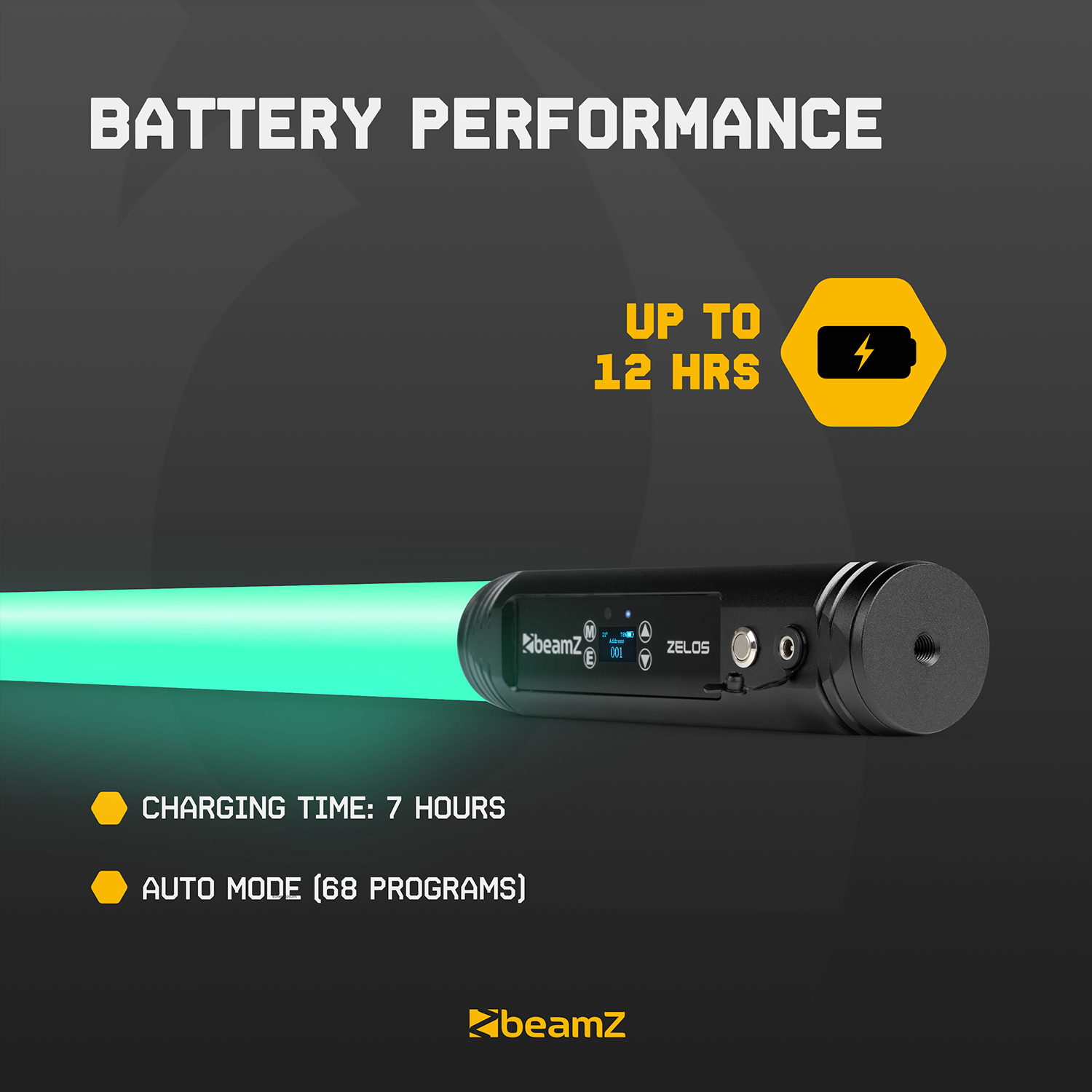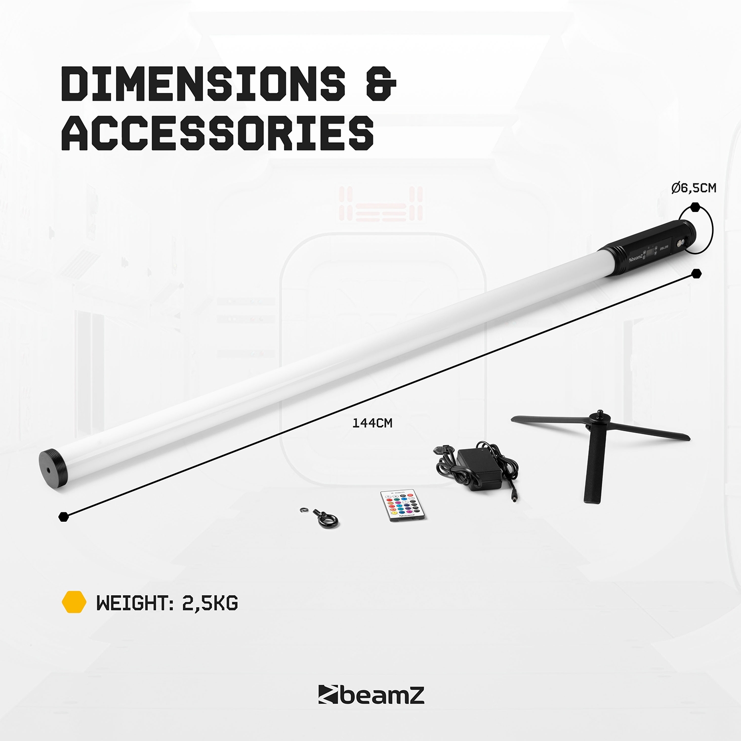 BeamZ Zelos LED Tube Light Bar - Battery Powered Stage Lighting Kit with Case