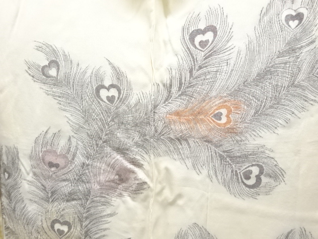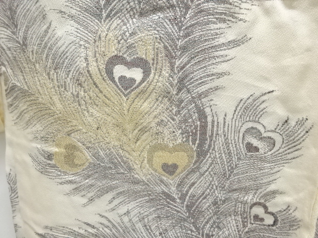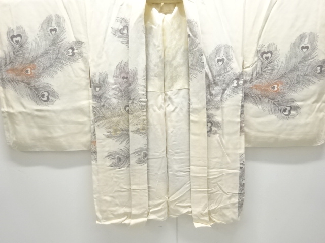 69886# JAPANESE KIMONO / ANTIQUE HAORI / SILK / WOVEN PEACOCK FEATHERS