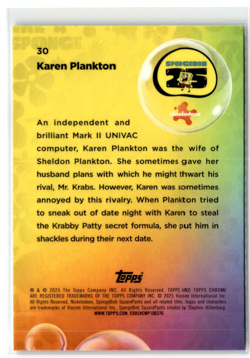 | 2025 TOPPS CHROME SPONGEBOB KAREN PLANKTON #30 | ||||||||||||||