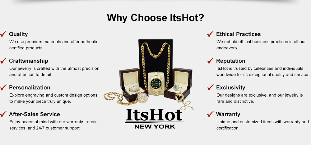 At ItsHot, we believe that true luxury should be accessible. With over 20 years of experience, we specialize in high-end diamond jewelry and watches, offering both ready-to-ship and personalized designs crafted from superior-quality materials.