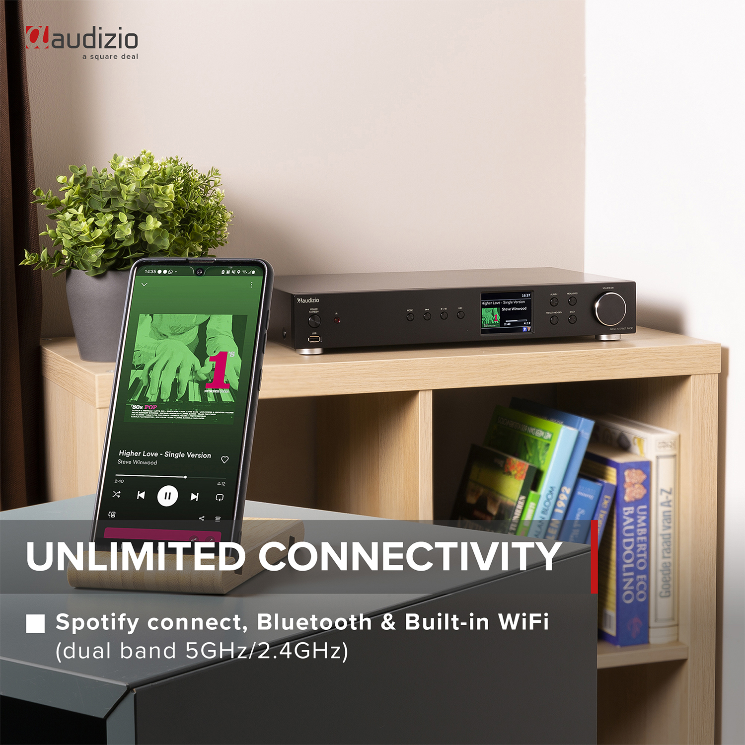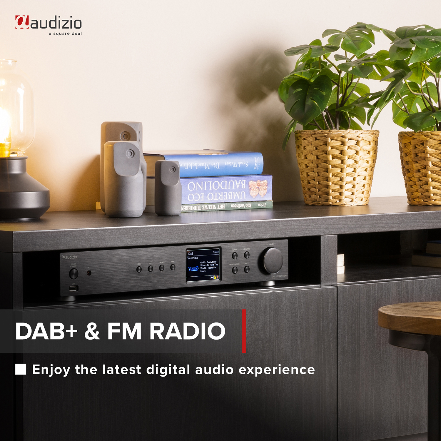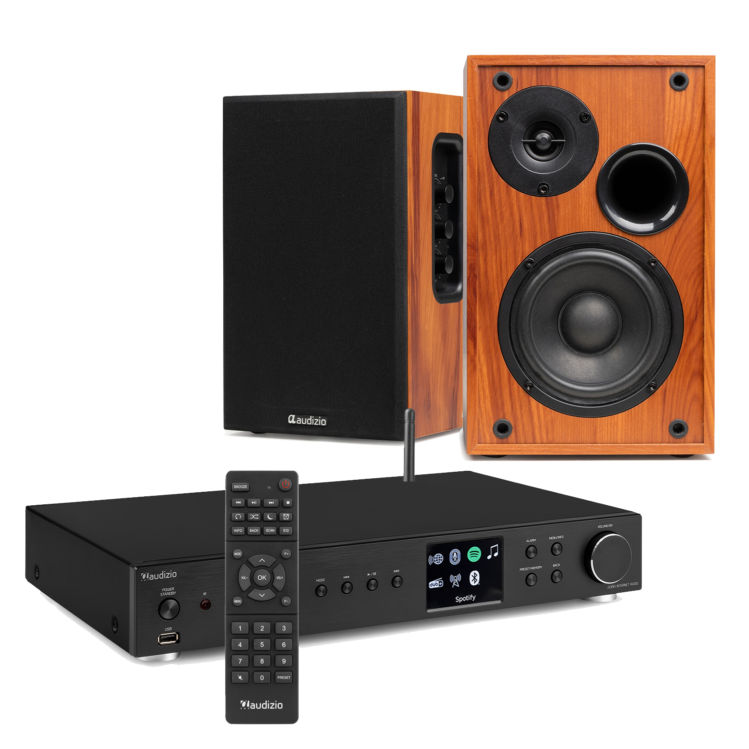 Audizio Adria DAB Internet Radio & KS02 Bookshelf Speakers with Spotify - Wood