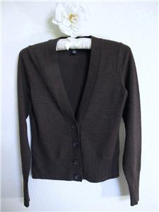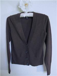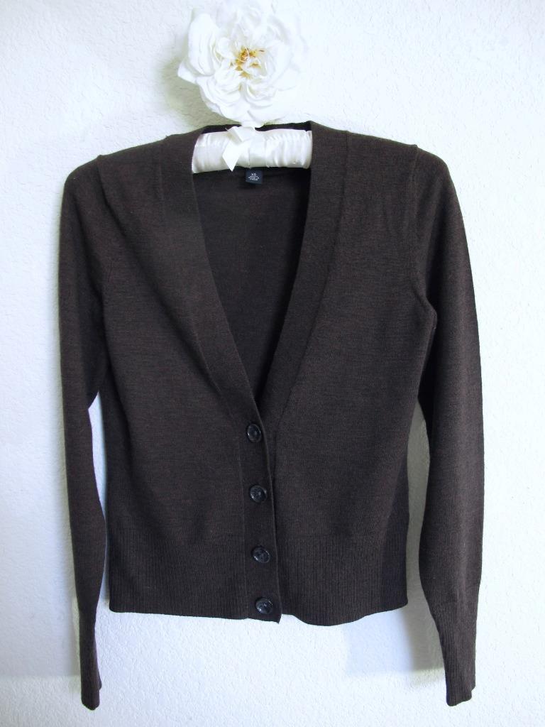 Banana Republic Extra Fine Merino Wool Cardigan Sweater XS Brown Classic Preppy
