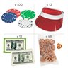 Planning an adult game night and not sure where to start? Grab this kit and have the items you need to throw the perfect poker party. Your poker night setup is easy with this awesome game night kit. Your guests will be delighted to get together and make some fun memories. (172 pcs. per unit) Assortment may vary. Includes: • 12 Paper $100 Bill Playing Card Decks (3 1/2” 54 cards per deck) • 48 Clear Pretzel Fun Packs (Bite size mini pretzels in .5-oz. packets. Total wt., 24 oz. Edibles are non-returnable. For more information, visit our “Return Policy” page located on our website. Ingredient, nutrition, allergen and other product information are provided on our Web and Mobile sites for reference purpose only, without warranty or representation as to accuracy. Manufacturers adjust their labeling regularly and are solely responsible for the accuracy of the information. For general questions concerning these items, please contact our customer service at 800-228-0475.) • 100 Plastic Poker Chips (1 1/2” Each red, blue, green and white chip is detailed with all four playing card suits.) • 12 Plastic Transparent Visors (24” circ. Each with an with an elastic strap)
