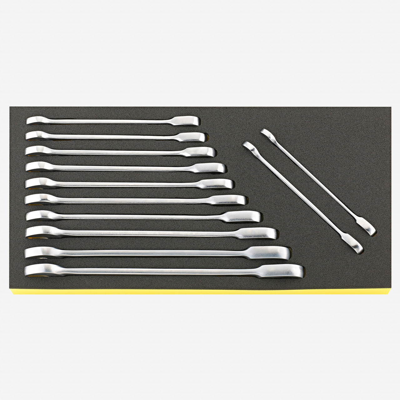 Stahlwille TCS 17F/12 OPEN RATCH Metric Ratcheting Combination Wrench Set,12 Pieces, 8 - 19 mm![]() (Manufacturer provided photo may slightly differ from actual product.) Stahlwille TCS 17F/12 OPEN RATCH Ratcheting Combination Spanner Set, Metric, 12 Pieces Bi-hexagon (12-point) ratcheting ring end Reversible by flipping tool 72-tooth ratchet has a small 5 degree return angle Large load-bearing capacity High-grade chrome alloy steel, chrome plated Drop forged, oil-hardened Non-slip surface texture Tool Control System: chemical-resistant safety foam insert with high-precision, 3-D cutouts 350 x 175 x 30 mm Includes 12 wrenches: 8, 9, 10, 11, 12, 13, 14, 15, 16, 17, 18, 19 mm |