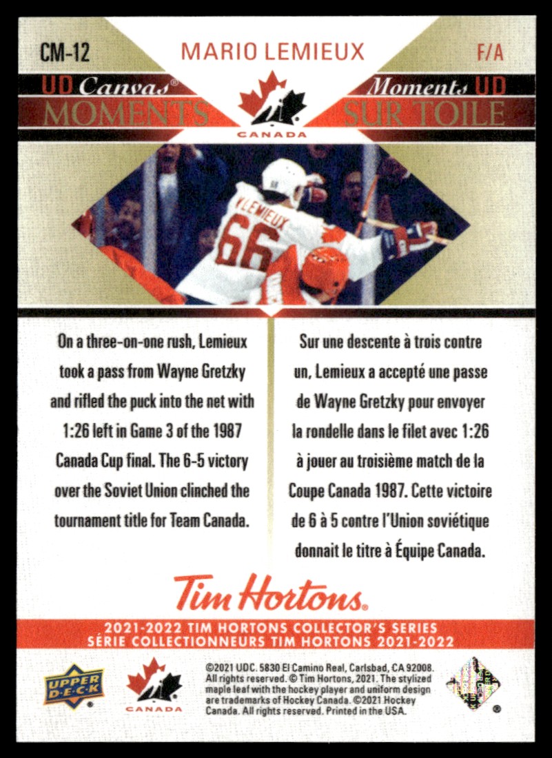 | 2021-22 Upper Deck Tim Hortons Canvas Moments Mario Lemieux #CM-12 |
