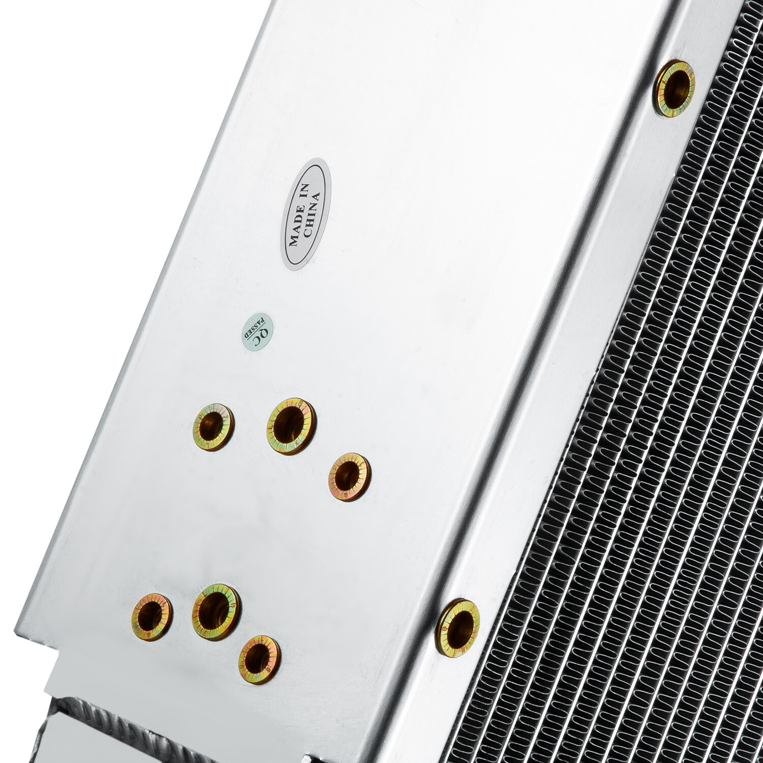 This aluminum radiator is designed to provide maximum cooling efficiency to prevent premature engine failure. Its light-weight, and high-heat transferring aluminum features a tube and fin design that, dramatically increases surface area that enables the heat to dissipate more efficiently. This Aluminum Radiator is at least 40% more efficient than stock ones. Most importantly, it has a much higher capacity for coolant than stock ones, which means that your cooling system will be more efficient and will be more resistant to temperature surges in racing applications.