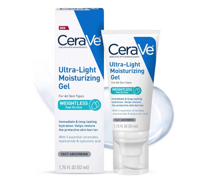 CeraVe Ultra-Light Moisturizing Gel, Hydrating Gel Face Moisturizer w/ Ceramides, Niacinamide, Hyaluronic Acid, Fragrance Free- 1.75 FL oz