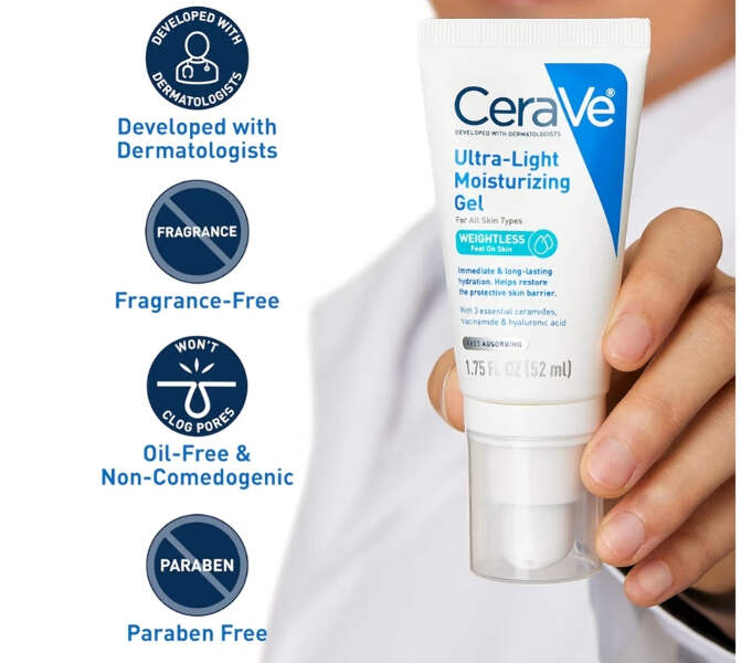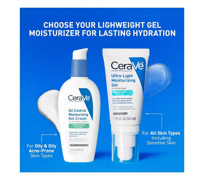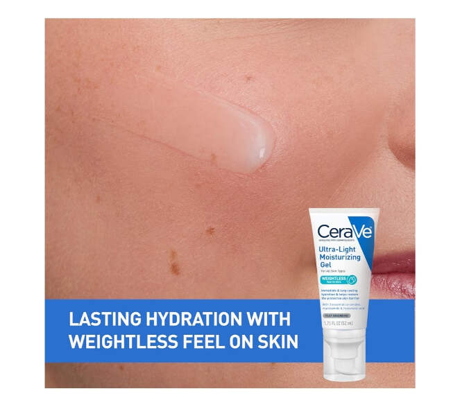 Brand CeraVe Item Volume 1.75 Fluid Ounces Item dimensions L x W x H 1.4 x 1.85 x 5.5 inches Age Range (Description) Adult Special Feature Lightweight, Non Comedogenic Active Ingredients Niacinamide [ GEL MOISTURIZER FOR FACE ] Water-based moisturizer for face with 3 essential ceramides, niacinamide, and hyaluronic acid for immediate and long-lasting hydration while helping maintain the protective skin barrier. [ WEIGHTLESS FEEL ON SKIN ] This hydrating face moisturizer gel delivers powerful ingredients in a refreshing lightweight texture that is fast absorbing and non-greasy. The lightweight moisturizer for face leaves skin feeling softer and soothed. [ OIL-FREE MOISTURIZER ] Suitable for use on face and neck. This daily face moisturizer can be applied in the morning and night. Hydrating moisturizer layers well under makeup and under SPF without feeling greasy and with no pilling. [ 3 ESSENTIAL CERAMIDES ] Ceramides are found naturally in the skin and can become damaged with sun exposure. All CeraVe products are formulated with three essential ceramides (1, 3, 6-II) to help restore and maintain the skin’s natural barrier. [ DEVELOPED WITH DERMATOLOGISTS ] Suitable for all skin types. Fragrance-free, paraben-free, non-comedogenic and oil-free