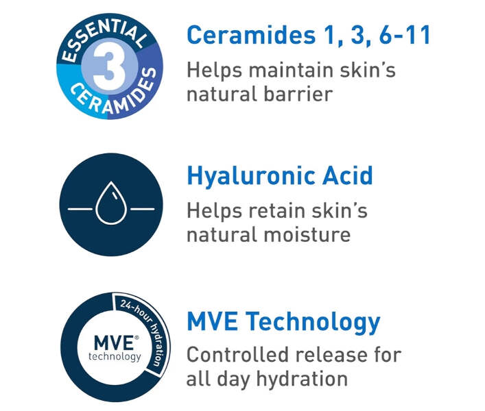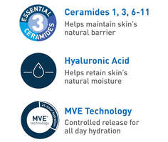 • [ 3 ESSENTIAL CERAMIDES ] Ceramides are found naturally in the skin and can become damaged with sun exposure. All CeraVe products are formulated with three essential ceramides (1, 3, 6-II) to help restore and maintain the skin’s natural barrier.