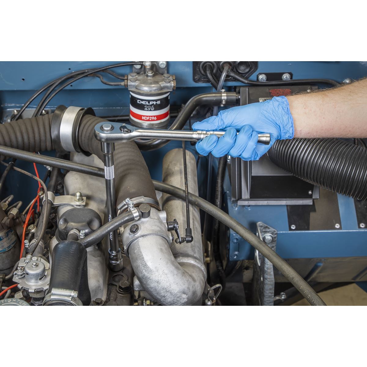 CLIQUET À 90 DENTS Comprend une clé à cliquet à 90 dents avec bouton-poussoir à dégagement rapide, des barres d'extension, un joint universel et des adaptateurs.