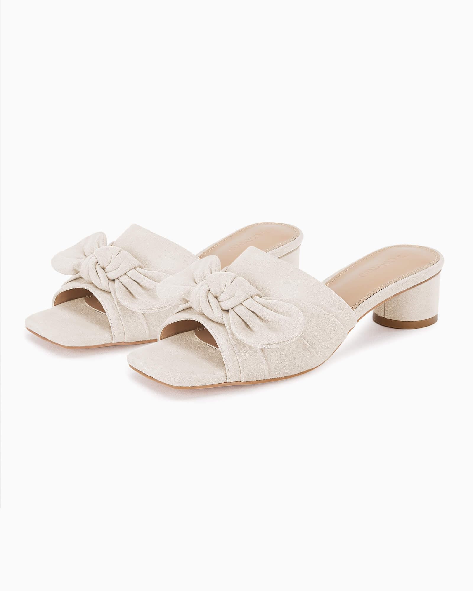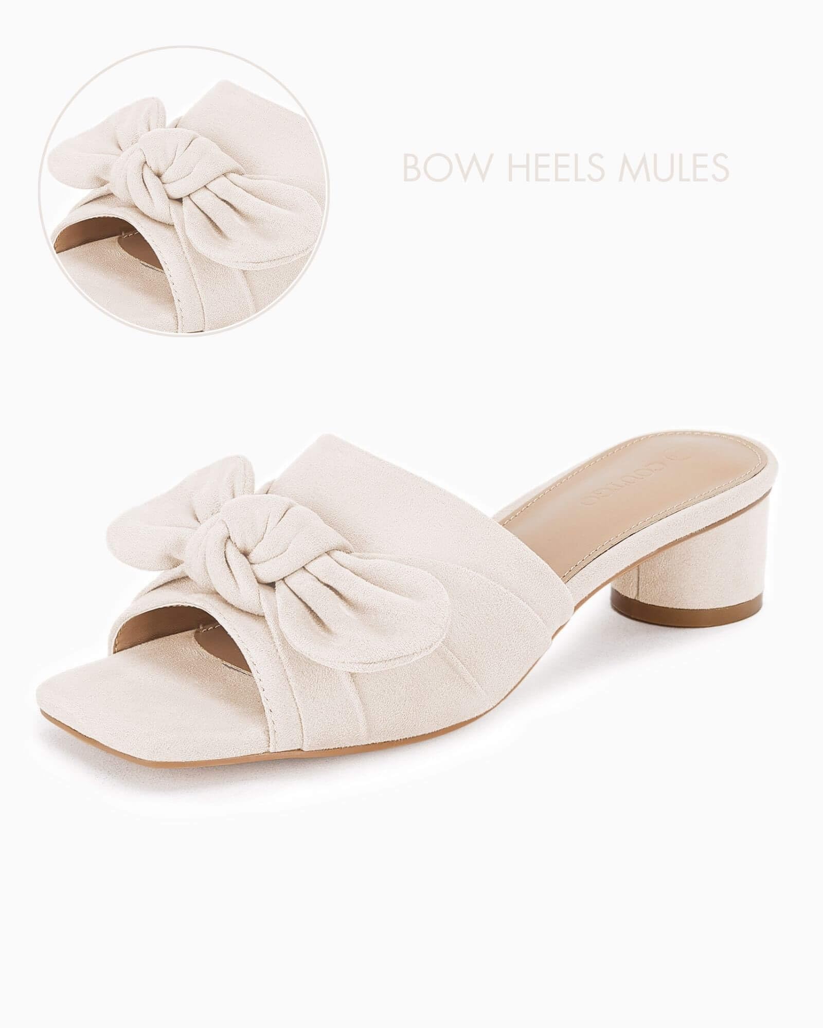 Slip on shoes women features special rounded thick heels for stylish and comfort, square open toe with front bow knot details definitely add polish and unique to your chic and sophistic look