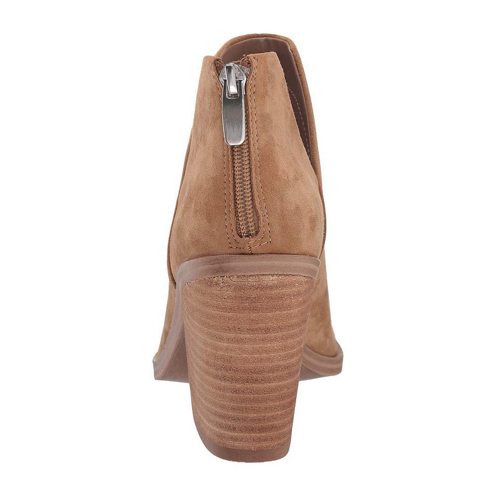 Features: side deep V cutout, pointy toe, chunky stacked heel, slip on, solid color, back zipper casual ankle bootie with heeled for womens