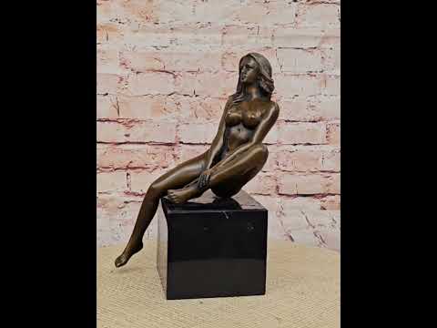 This erotic nude bronze sculpture is a stunning representation of feminine beauty and sensuality. Handcrafted using the ancient lost wax method, the statue captures the delicate curves and graceful pose of a woman in exquisite detail. The figure's natural form is brought to life with expert craftsmanship, making it a captivating work of art that draws attention and admiration.The rich brown patina finish accentuates the depth and texture of the bronze, highlighting every subtle feature while preserving the sculpture's timeless elegance. The smooth finish not only enhances the visual appeal but also ensures the durability of the piece, allowing it to maintain its beauty over time. The intricate design and careful attention to detail make this sculpture a masterpiece of artistic expression.Mounted on a polished black marble base, the sculpture exudes sophistication and style, making it a perfect decor piece for those who appreciate fine art. Whether displayed in a personal collection or as a statement piece in a living room or office, this statue adds an element of luxury and elegance. The combination of the handcrafted bronze figure and the sleek marble base creates a harmonious balance, making it a striking addition to any space.