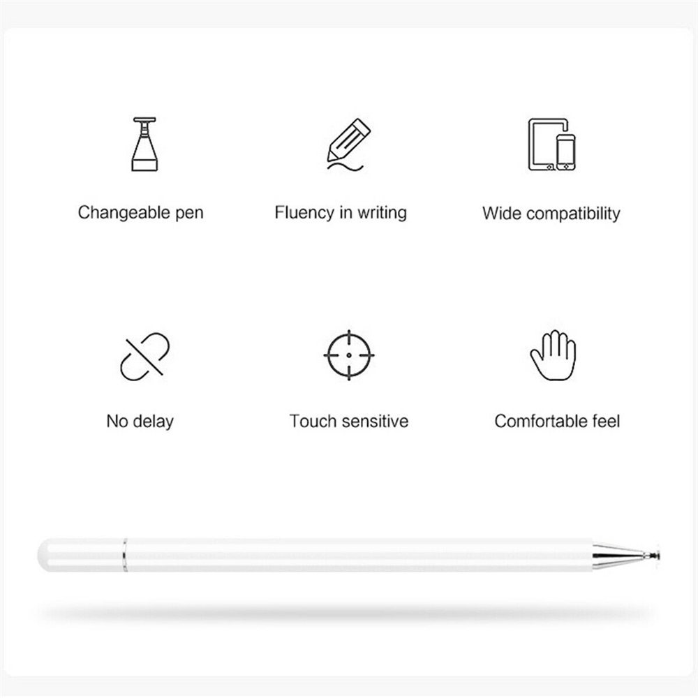STYLUS PENS FEATURES: aluminum cylinder pen body, the position of the disc tip is connected by metal steel balls to improve life and double durability. Both ends are replaceable, providing a smooth pen-writing experience for your touchscreen tablets and smartphones.