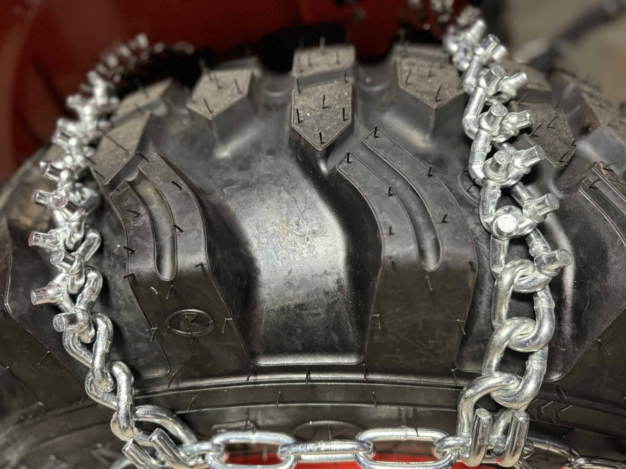 Studded Tire Chains are High Strength Alloy 10B21 Steel. Case hardened in accordance with 10B21 Onorm Standards.
