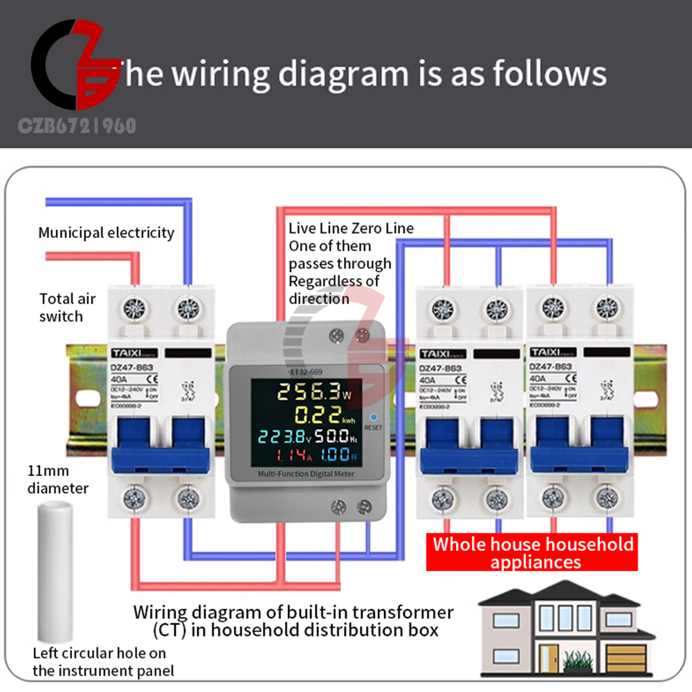 3. Single-screen real-time display of six key parameters: voltage, current, power, frequency, power factor, and energy consumption