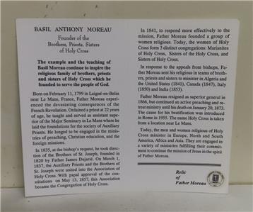 Information about Basil Anthony Moreau, Founder of the Brothers, Priests, Sisters of Holy Cross as well as an appropriate prayer.