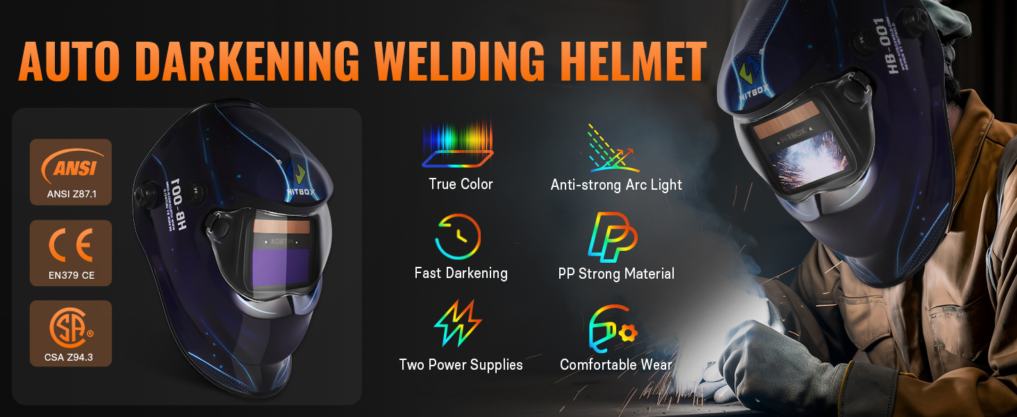 HITBOX Auto Darkening Large View Welding Helmet for MMA/Stick TIG MIG CUT Welder Mask