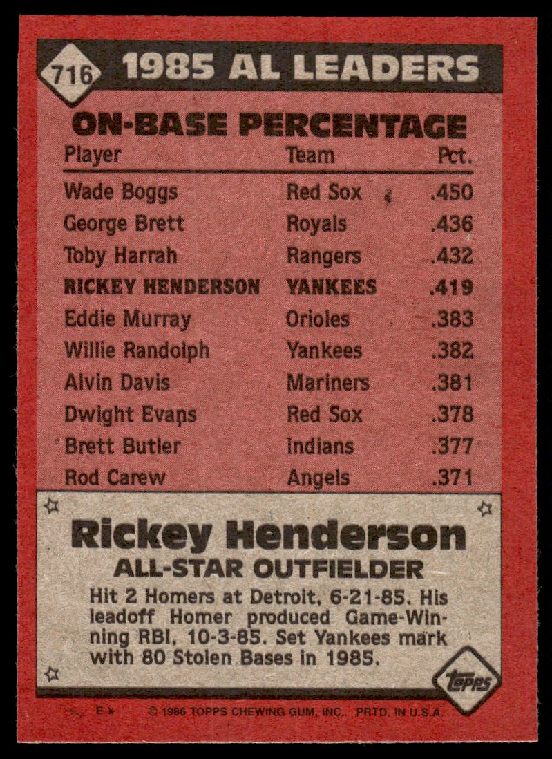 | 1986 Topps Rickey Henderson #716 MINT |