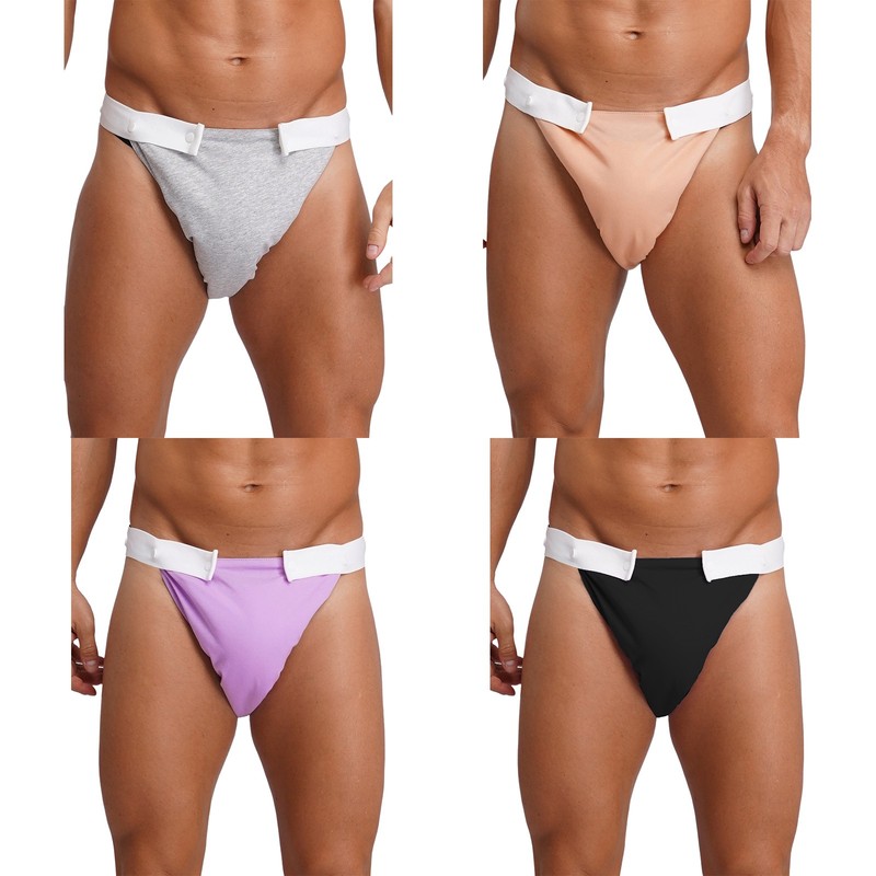 Low-rise thong for men, solid color, pull on closure, front bulge pouch, provides more space for private parts without extrusion or constraint.