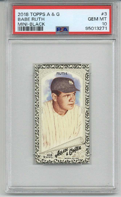 The item you are buying is a PSA GRADED and ENCAPSULATED 2018 Topps Allen & Ginter Mini Black #3 card of Babe Ruth. The card was graded a 10 by PSA. This card comes from my personal collection. The plastic of the encapsulation has no cracks and is scratch free.