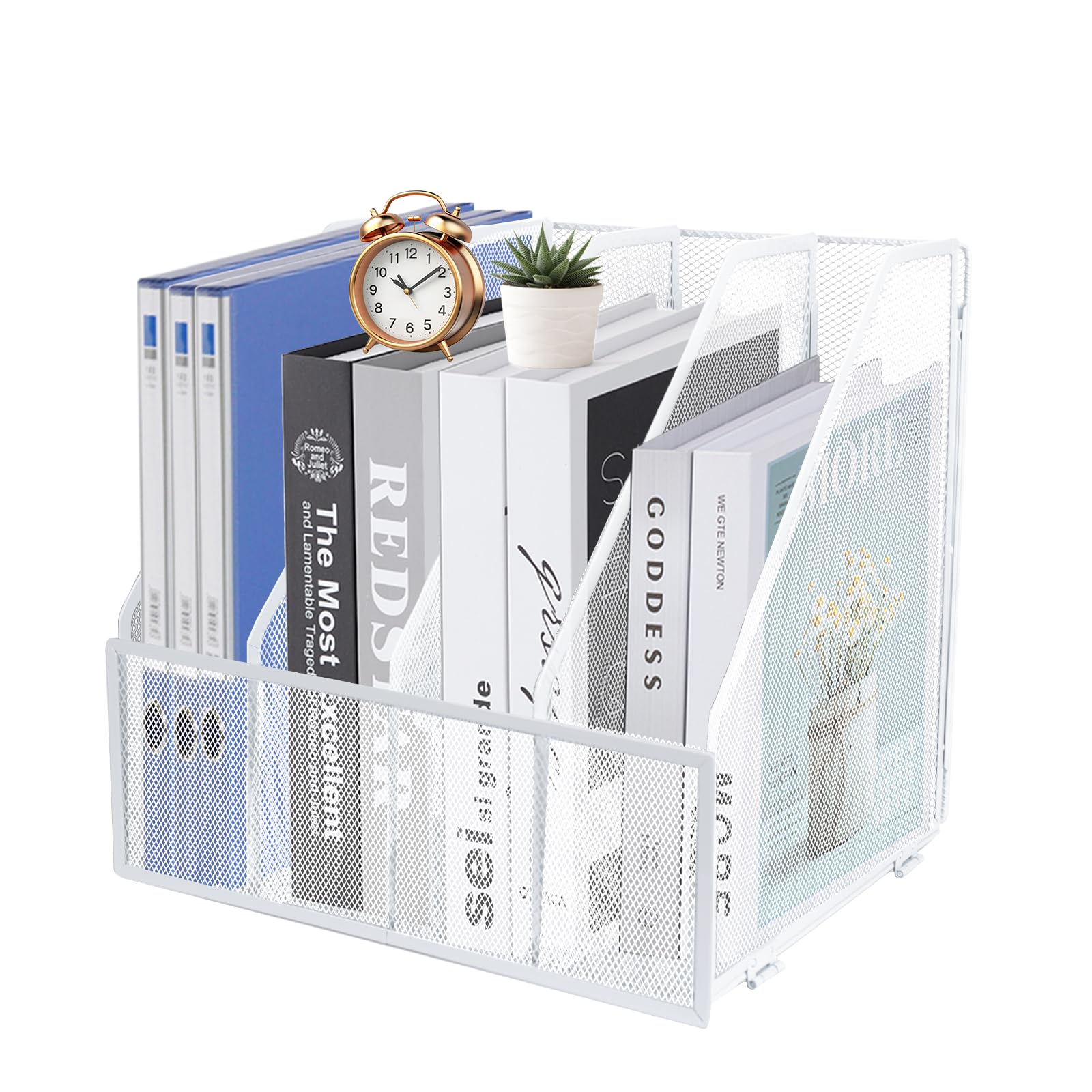 Desktop Metal A4 Magazine File Holder Mesh Desk Tidy Office Literature Document Ring Binder Paper Organiser Filing Rack,4 Compartments,Black