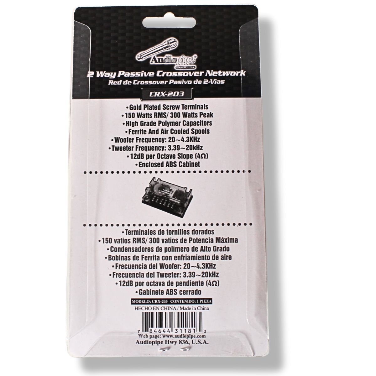 Upgrade your sound system with the Audiopipe CRX-203 2-Way Passive Crossover Network, engineered to deliver cleaner audio and better frequency separation for your mids and highs. Whether you're building a custom component setup or replacing factory crossover networks, the CRX-203 gives you dependable performance backed by high-quality components.