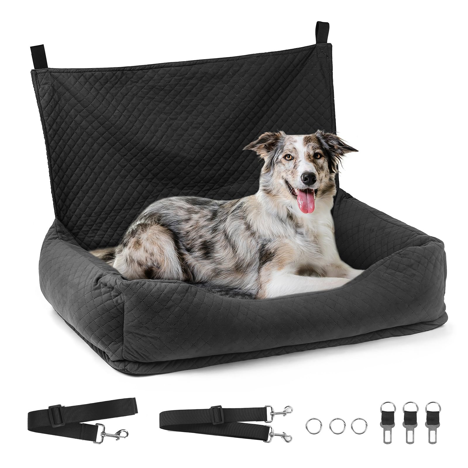 Perfekt geeignet fuer alle Fahrzeugtypen: Der grosszuegige Hunde Autositz (88cm * 48cm * 19cm) mit 55-cm-Rueckenlehne bietet Platz fuer zwei kleine Hunde oder einen mittelgrossen Hund bis 25 Kg. Dank der weichen Polsterung mit PP-Baumwolle und 1cm dicker Schaumstofffuellung dient er gleichzeitig als komfortables Hundebett fuer Auto und Zuhause. Die multifunktionale Loesung fuer Hundesitz Auto und Sofa-Ersatz - ideal fuer Reisen mit kleinen bis mittelgrossen Hunden.
