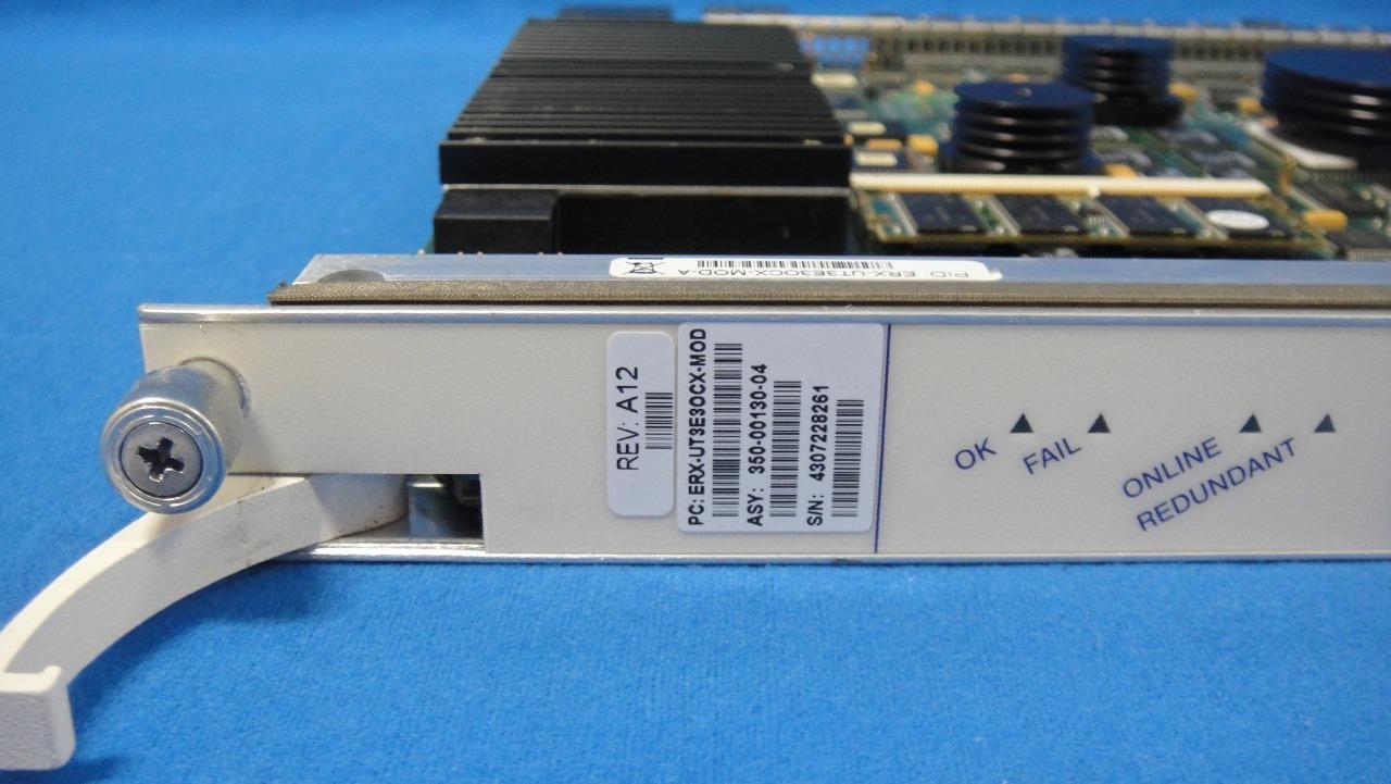 Juniper Networks ERX Series ERX-UT3E3OCX-MOD Line Module COCX-F3 supports 12 frame based fractional T3 interfaces or 12 E3 frame-based interfaces.