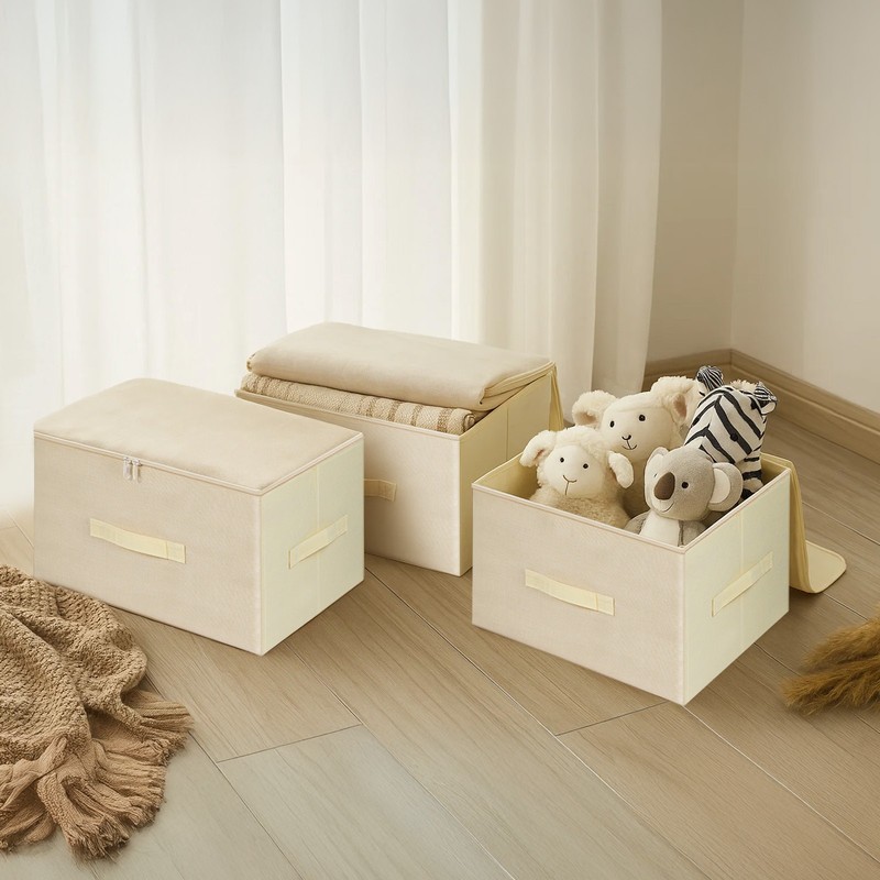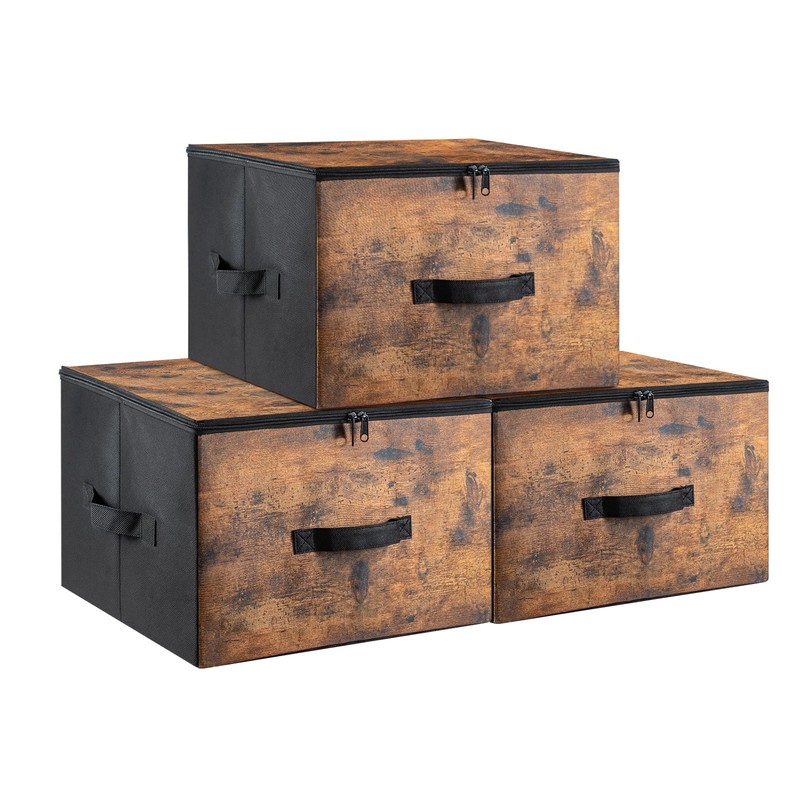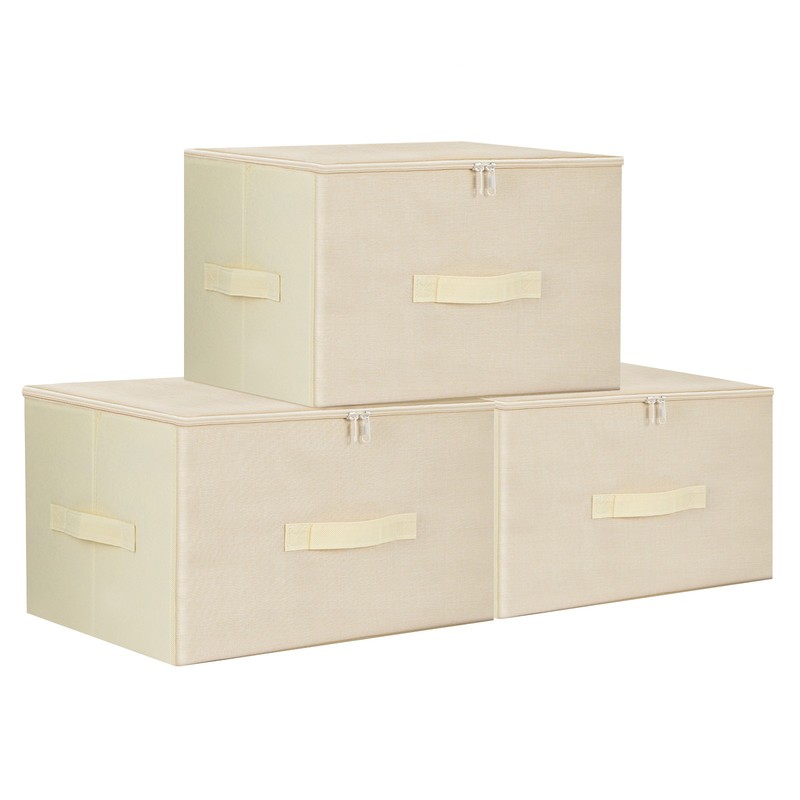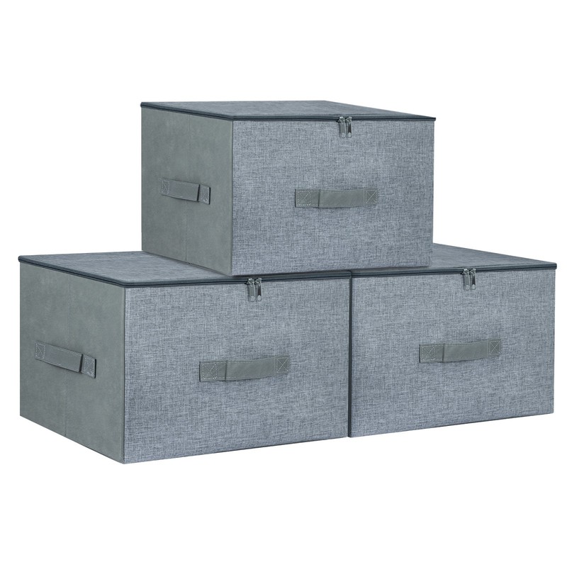 - 【WHAT YOU GET】A set of 3 storage boxes with zipped lids, 3 handles each to pull it out or lift it up, and a foldable design to save space