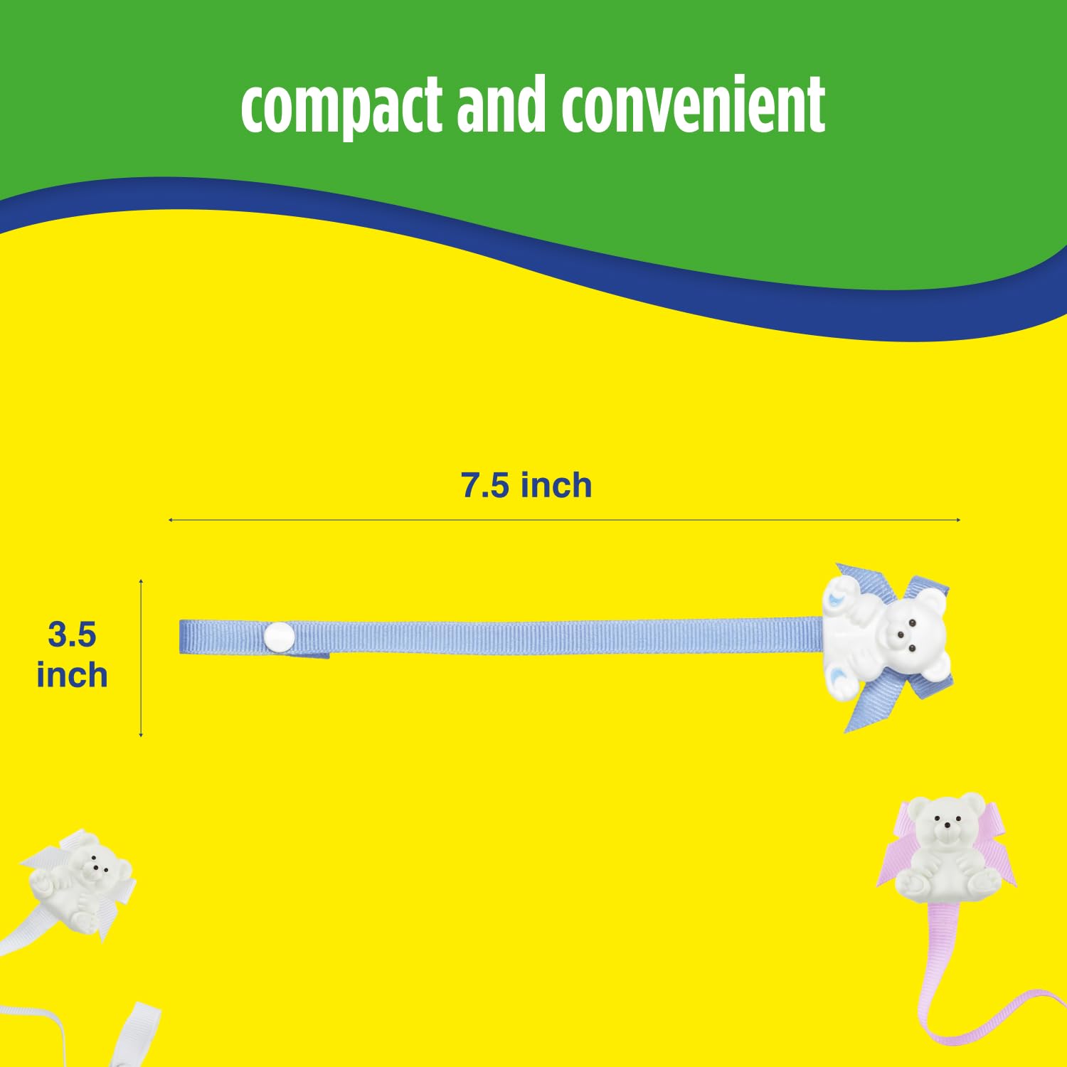 Baby Buddy's Pacifier Holder clips ANY pacifier to baby's shirt safely, easily, and quickly. No more lost pacifiers or carrying around multiple pacifiers because baby drops them on the dirty ground. A durable, "Super Grip" metal clip featuring a cute, three-dimensional bear attaches securely to baby's clothing, car seat cover or stroller, and the other ends snaps neatly and easily to the pacifier handle or the pacifier shield, as with silicone pacifiers with holes in shield. Baby Buddy's Pacifier Holder keeps your baby's binkie close at hand and safe from ground contamination. Simply hand-wash in warm, soapy water and allow to air dry to keep the Pacifier Holder clean and attractive. Comes in a wide range off colors to match every outfit and occasion. Check out our other Baby Buddy products because Every Baby Needs a Buddy.