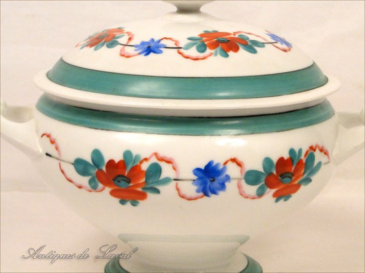Très jolie soupière en porcelaine de Paris, à décor de fleurs, d'époque Louis-Philippe début XIXème siècle.