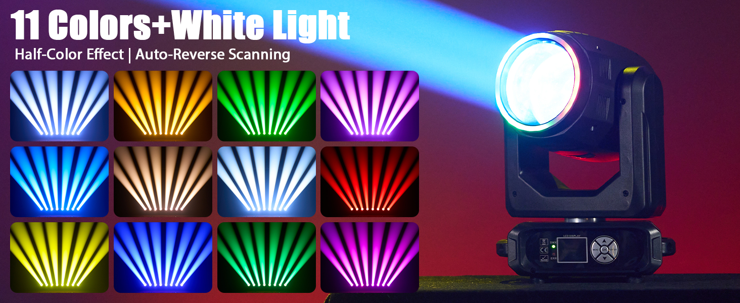 Features an 11-color fixed wheel + white light system with seamless fluid color transitions and independent rainbow effects. Enhance shows with 14 built-in patterns supported by dynamic shaking for rich, vibrant color performances.