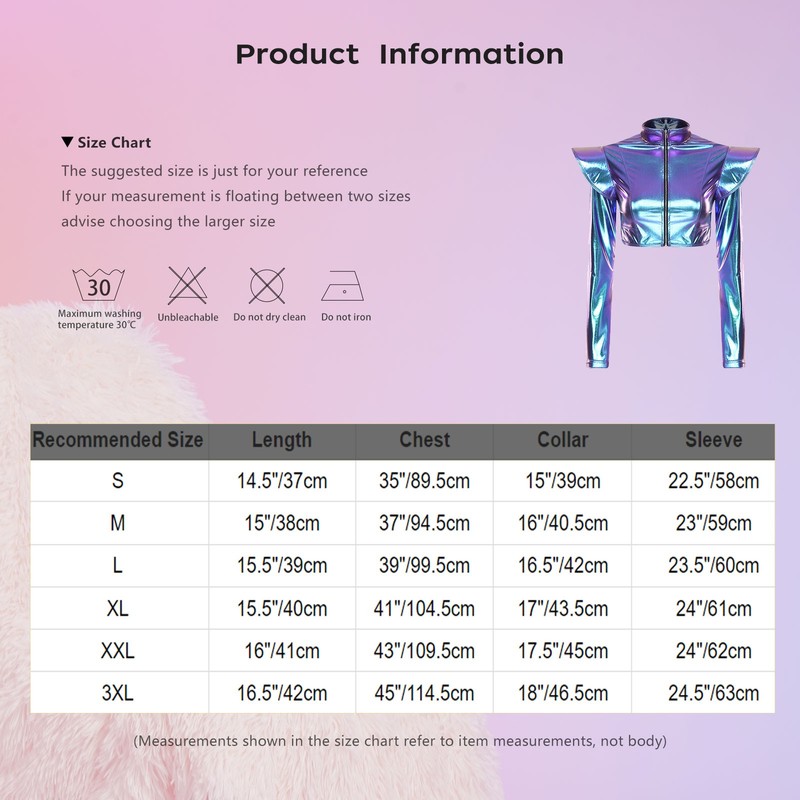 The front zipper design makes it easy to put on and take off, and it’s suitable for various events like club raves, parties, or other nightlife outings, allowing you to make a statement.