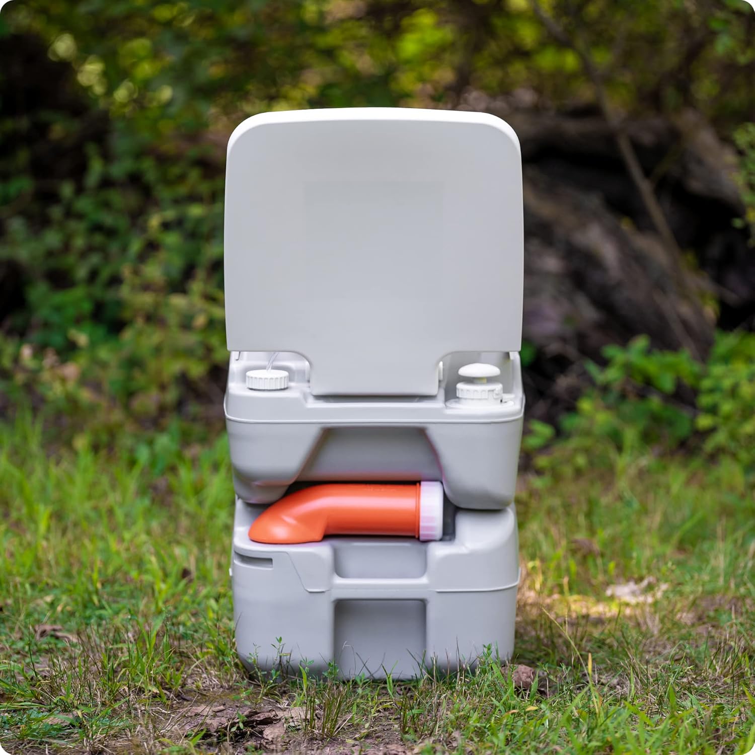 ✔ Compact 5.3-gallon indoor & outdoor commode